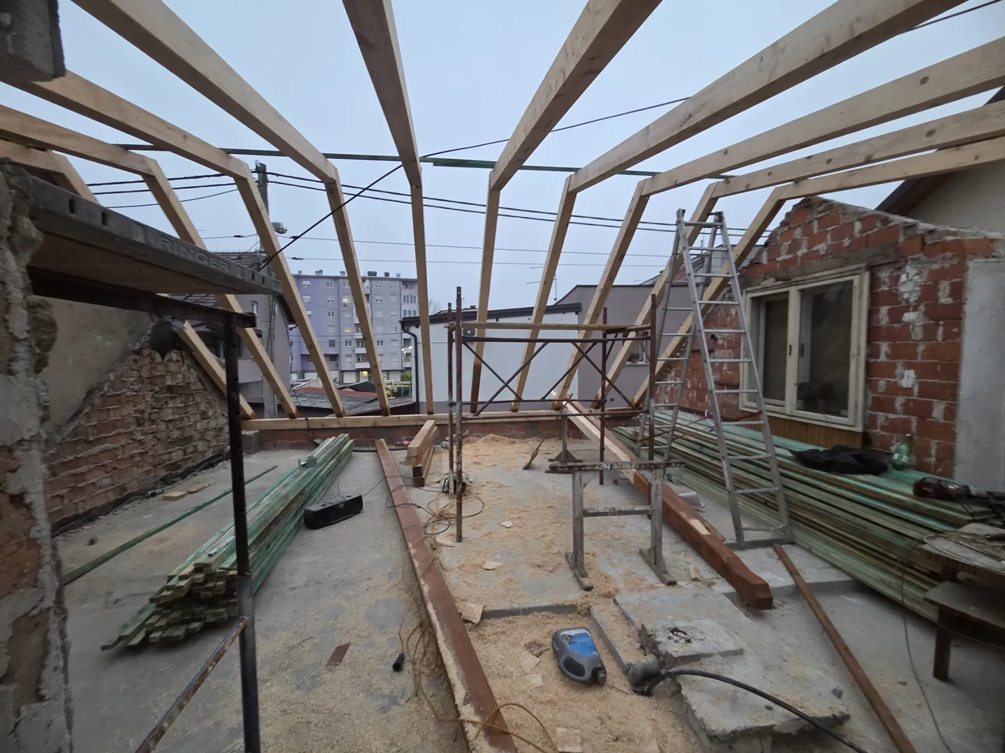 Poštovani, potreban nam je kompletno novi krov i krovište u trenutno postojećim gabaritima i dimenzijama s ugradnjom 3 krovna prozora i unutarnjom izolacijom kao pripremom za uređenje potkrovlja u stambeni prostor (sobe). Površina dvostrešnog krova je m2, dimenzije kuće su 8.50m x 7.80m. Pod tavana je podaskani slijepi pod od greda. Kuća je prizemnica te se nalazi na Trešnjevci odnosno u Rudešu, samoj blizini Zagrebačke avenije, ima prilaz i dvorište za parkiranje i trenutno odlaganje materijala. Jednom bočnom stranom kuća je priljubljena uz zgradu. Slike potkrovlja i kuće u prilogu.
