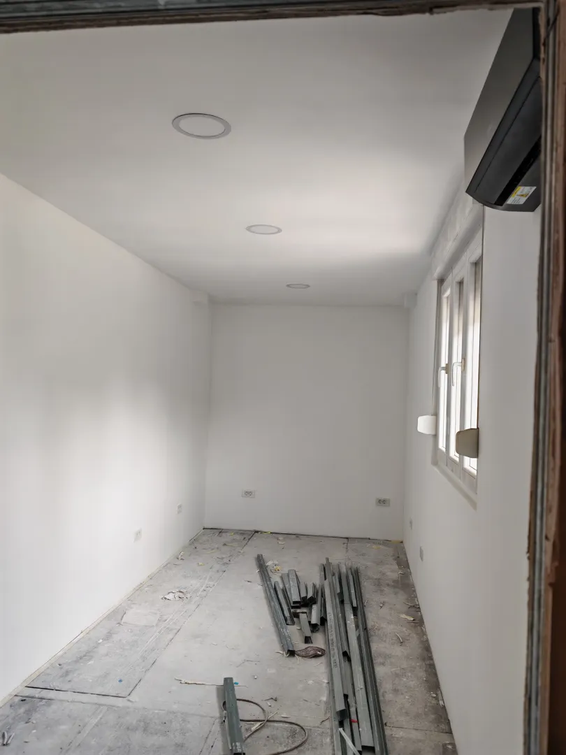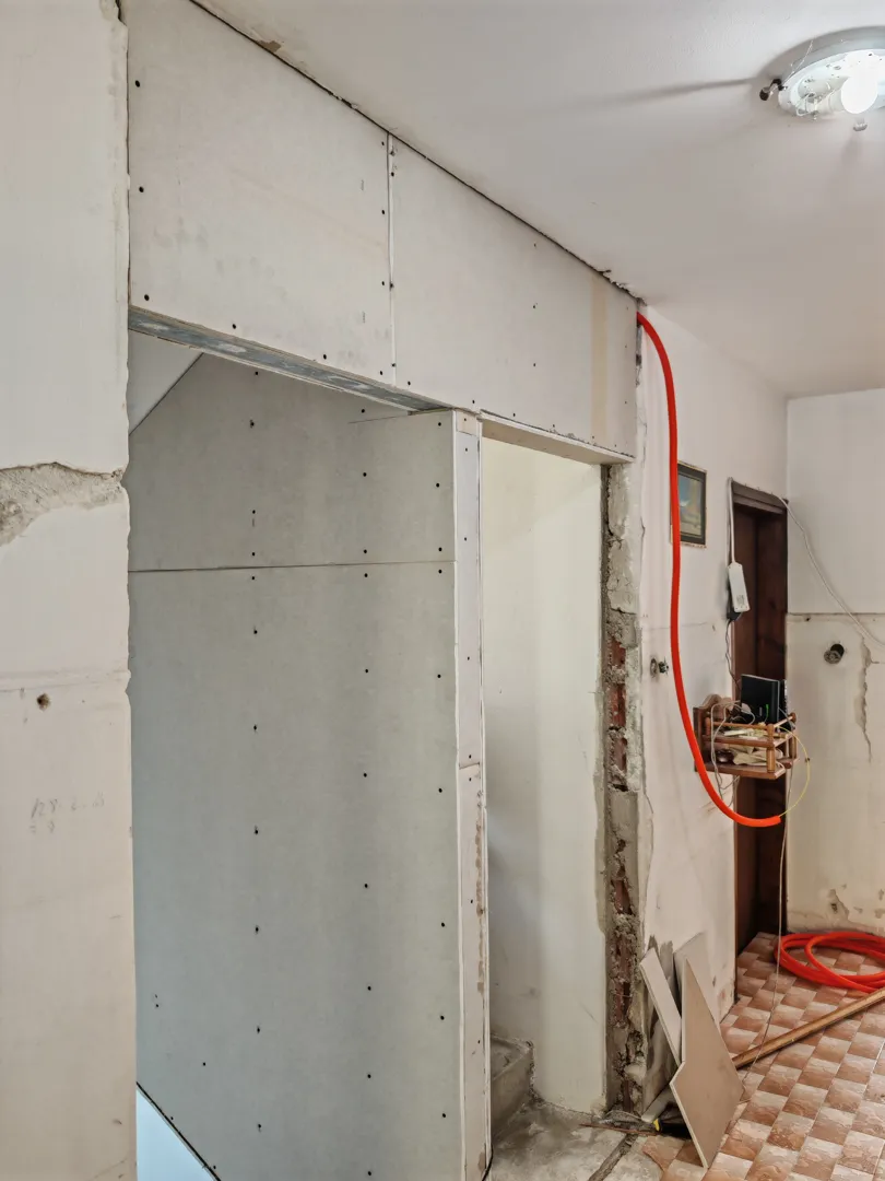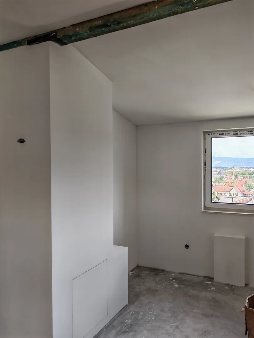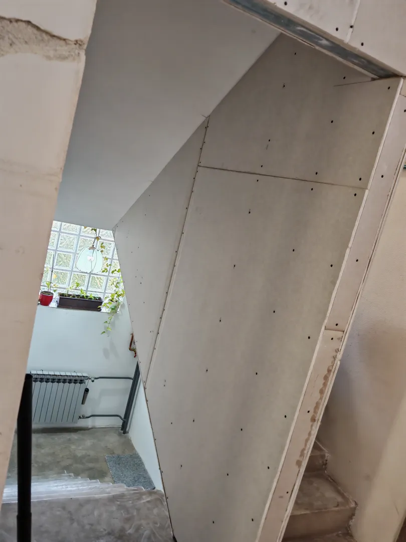 Betoniranje stepenica 13 gazišta.Demontaža starog (crijep) krova cca 35m2,bez odvoza. Podizanje zidova za cca 70 cm. Rušenje nepotrebnih betonskih i zida od cigle. Postavljanje novog limenog krova. Dovođenje vode i struje iz susjednog stana. Postavljanje knauf ploča ispod novog krova, Kao i ljepljenje na zid bez profila na novoizgrađene i dio starih zidova. Razvod vode i struje.Gletanje novog i starog knaufa te eventualno ličenje.