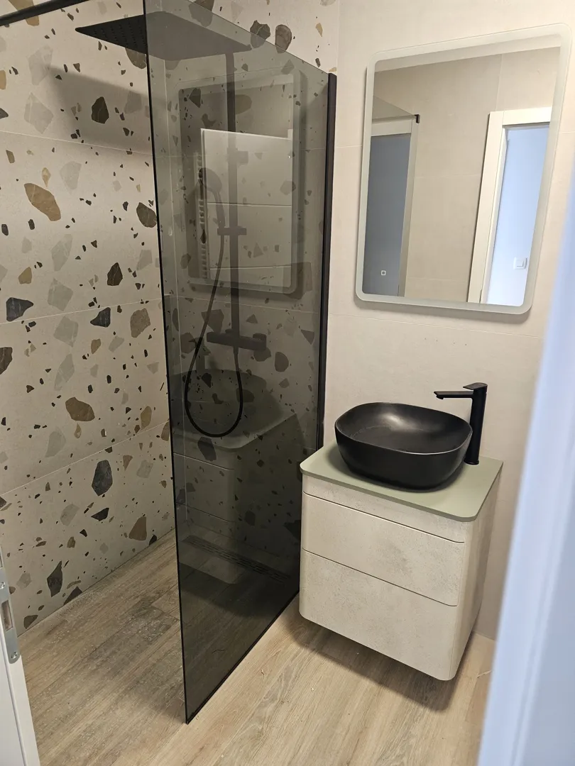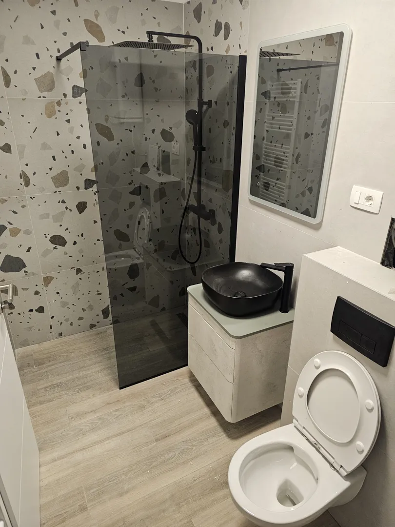Poštovani, Stan od 80m2, potrebna adaptacija sanitarnog čvora, (kupaonice 3.98m2 i wc -a 1.74m2 ,) zamjena sobnih vrata ( 4kom) , te uredjenje podova -u cijulazni prostor bi išli parketi sobna vrata - 4 kom elom stanu se mijenjaju parketi oko 70m2, rušila bih i jednu pregradu i da se napravi jedna velika spavaonica. Također moramo ugraditi mjernike za vodu u kuhinji . Jedan problem je što wc ima mali prozor ispod kojeg je veš mašina koja se otvara prema gore pa bi htjeli tu nešto promijeniti . Tlocrt stana u privitku. Molim ponudu. Hvala
