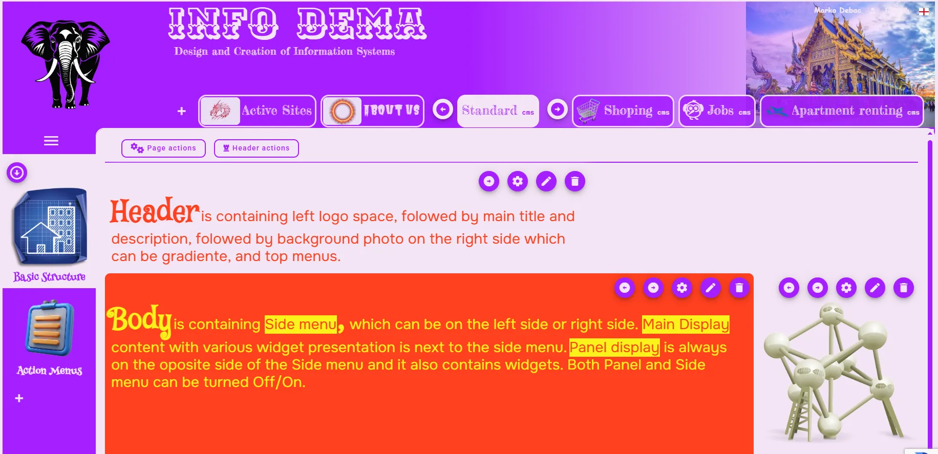O nama: INFO DEMA je firma za projektiranje i izradu informacijskih sustava, svih razina kompleksnosti, koristeći najnovije tehnologije (NE Wordpress);Angular za reaktivna web sučelja i Javu za izradu API i robusnog backenda, upravljanje bazom podataka, izvještaji.U ponudi imamo vlastiti CMS sustav (Content Management System) sa implemetiranom sigurnosti, i to za više tipova stranica: reklamne stranice, stranice za najam apartmana (individualno ili kao agencija), web shop, blogovi/news i objavu poslova.