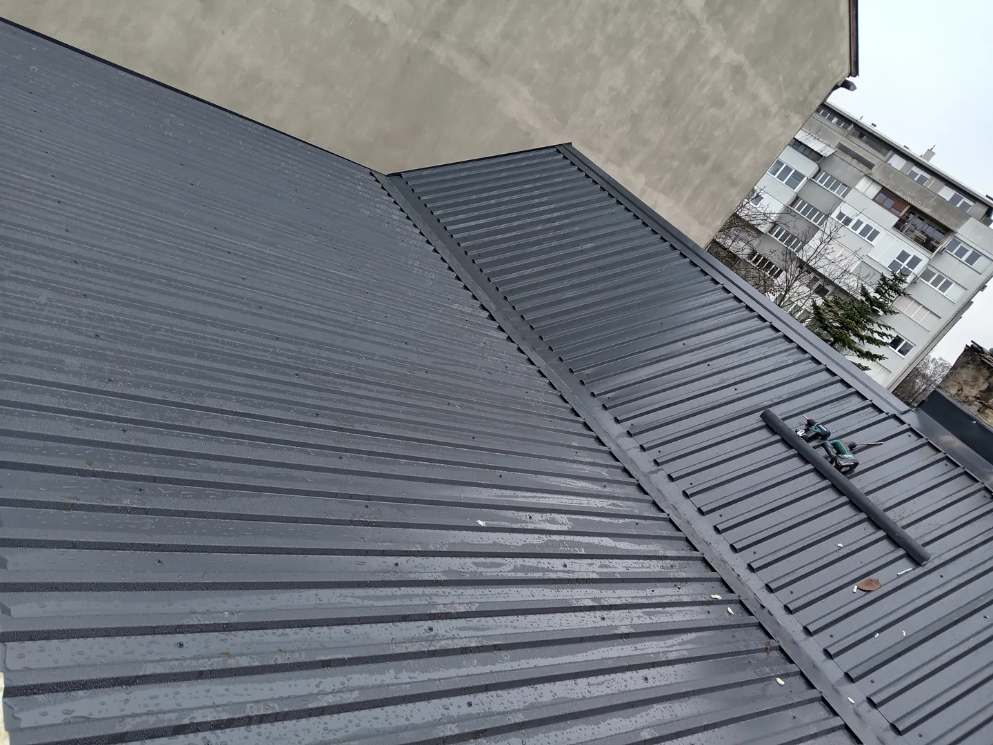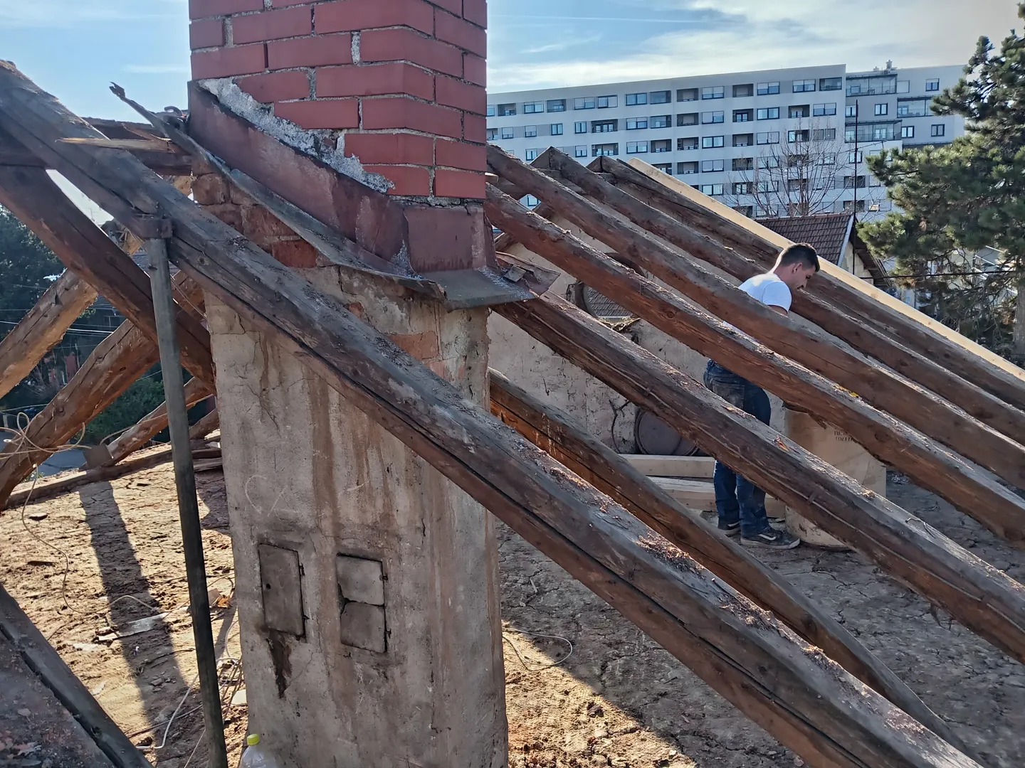 Poštovani treba mi sanacija limenog pokrova: skidati stari krov i staviti novi. Krov je kosi s tim da su zaljepljeni s kućama do, i ja bih to htio odvojit. Dimnjak je na mojem krovu. Molim ponudu