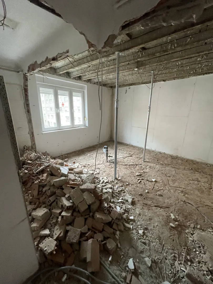 Adaptacija stana - starogradnja - centar Zagreba 2 x kupaonica (pojedinačna kvadratura 12 m2 - ukupno 24 m2) - komplet adaptacija (skidanje pločica sa podova i zidova, nivelacija podova, sanacaija zida sa hidroizolacijom ukupno 15 m2, postavljanje pločica, postavljanje keramike uključujući wc, izrada tuš kabine po principu montaže staklene stijenke, farbanje zidova) 1 x otvoreni prostor kuhinja blagavaona boravak - ukupno 50 m2 - čupanje parketa, vađenje šute (30 cm dubina ispod parketa - 30 cm daske i šute) - termoizolacija podna + postavljanje laminata 1 x preslagivanje kaljeve peći dimenzije 50x50x 1 x izrada gipsanog zida: dužina 3m, visina 3m 1 x izrada gipsanog zida: dužina 3m, visina 3m + ugrađivanje postojećih vrata 2 x izrada gipsanog zida + zvučna izolacija: dužina 2m, visina 3m 1 x demontaža postojećih vrata + monaža istih vrata na drugo mjesto 1 x zatvaranje rupe od postojećih vrata: dužina 2m, visina 2.5m