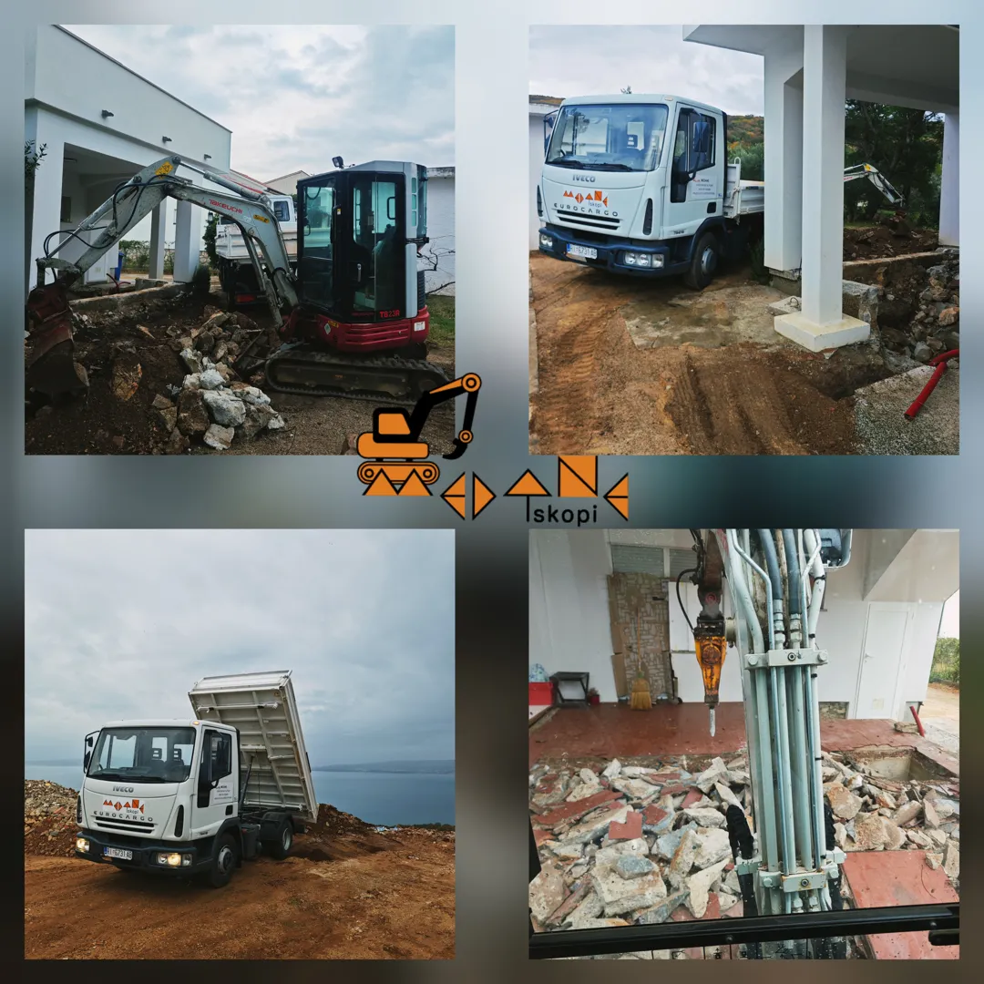 O nama: Izvodimo iskope,zemljane i prateće građevinske radove vlastitom mehanizacijom na području otoka Krka i okolice.Radimo iskope temelja i kanala,čišćenje i pripremu terena,nasipavanje,utovar,dovoz i odvoz materijala,poravnanje i zbijanje terena.Opremljeni smo bagerima 2,8 t i 9 t,demperima i kiper vozilom te priključcima poput hidrauličnog čekića,grajfera i planirnih žlica.Radimo pouzdano,precizno i fleksibilno,samostalno ili kao kooperant.
