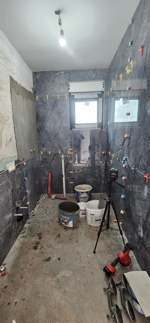 20m2 zid Cc30m2 pod kuhinje bez cokla 3m2 pod kupaonice, bez cokla .površina je idealno ravna zidne pločice na zeleni knauf Podne na epoksilni pod