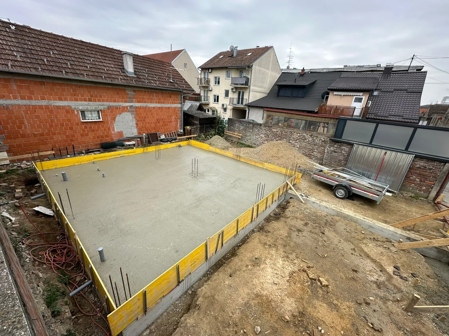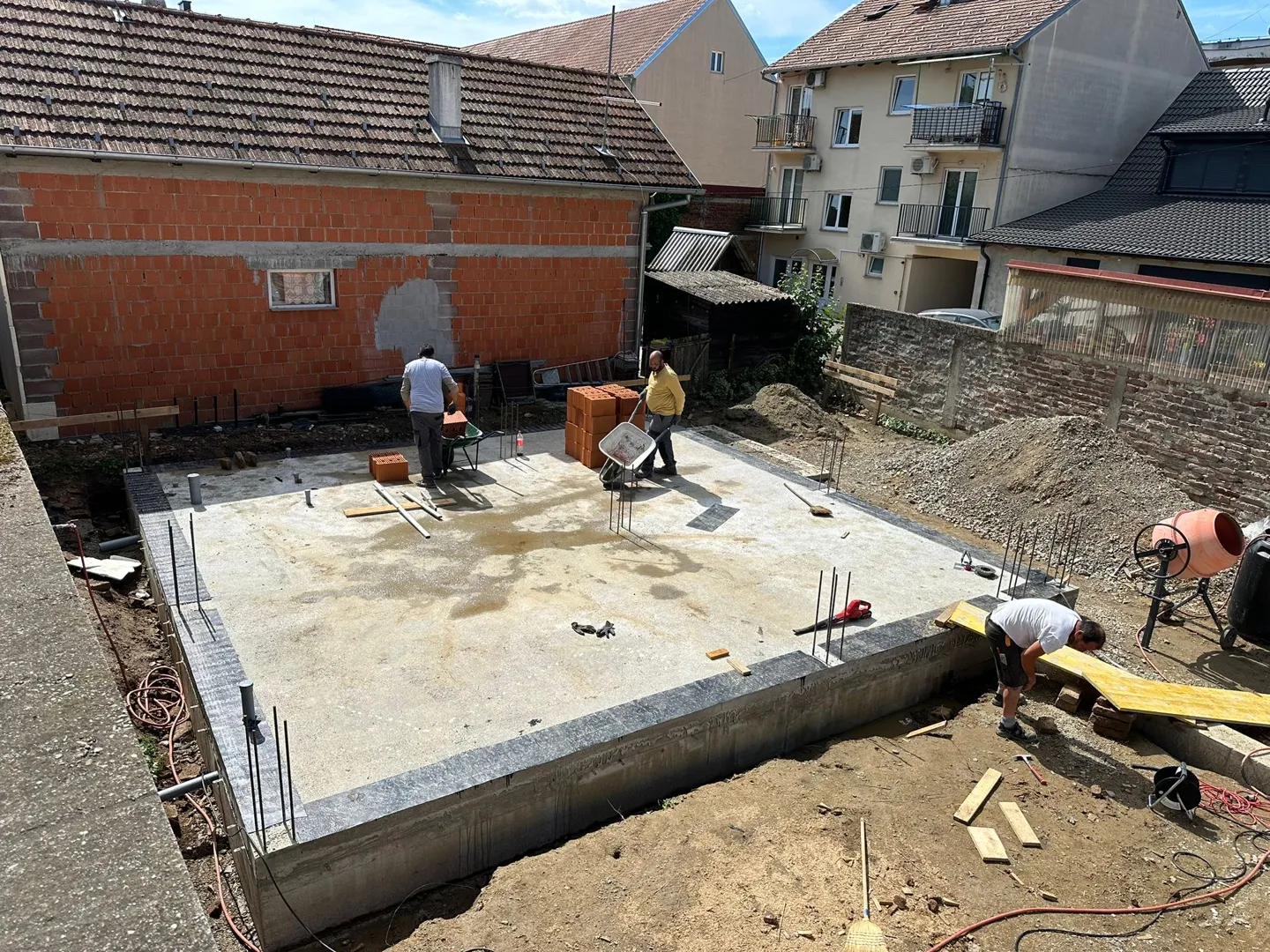 Poštovani, Ukratko trebam: - betoniranje temelja, - malog podrumčića (15 m2) koji je naknadno dodan (tu je nacrt i toga) - gradnju prve etaže (takoreći kocka, open space, s malim toaletom ispod stepeništa, jednom ostavom i malom tuš prostorijom - cca 65 m2 - gradnju druge etaže, tri spavaone i jedna kupaona - cca 45 m2 - 1 međukatna betonska deka + krovna betonska deka (ravan krov) Iskop može i ne mora (mogu to i sama organizirati). Svi otvori (vrata i prozori: 1 staklena stijena, 1 prozor i ulazna vrata u prizemlju i 3 x balkonska vrata s prozorom + jedan mali prozor) su na jednoj strani. Hvala