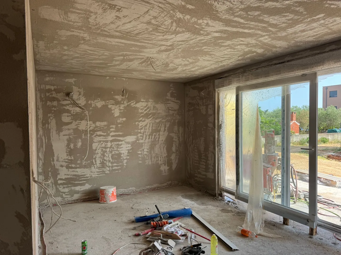 Kuća prizemnica sa zidanim nosivim zidovima, potrebna je grubo i fino žbukanje cementno-vapnenom žbukom. U prilogu šaljem troškovnik u kojem piše koji koraci su potrebni pri žbukanju.