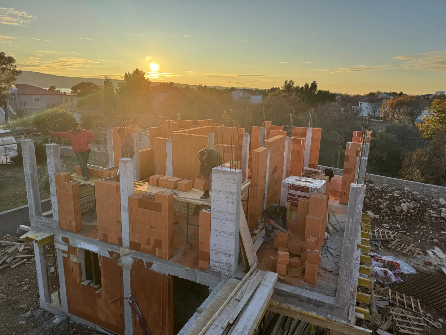 Radi se o novogeadnji, tri etaže, dio armirani beton, dio Porotherm profi cigla ljepljena pjenom. Na objektu je pistavljena stolafija, re napravljena izolacija ravnog krova. Zavrsna obrada silikatnom žbukom. Izolacija bi išla MINERALNA VUNA 14cm (progupotarno) te dio moze stiropor. Boja pijeskasta.