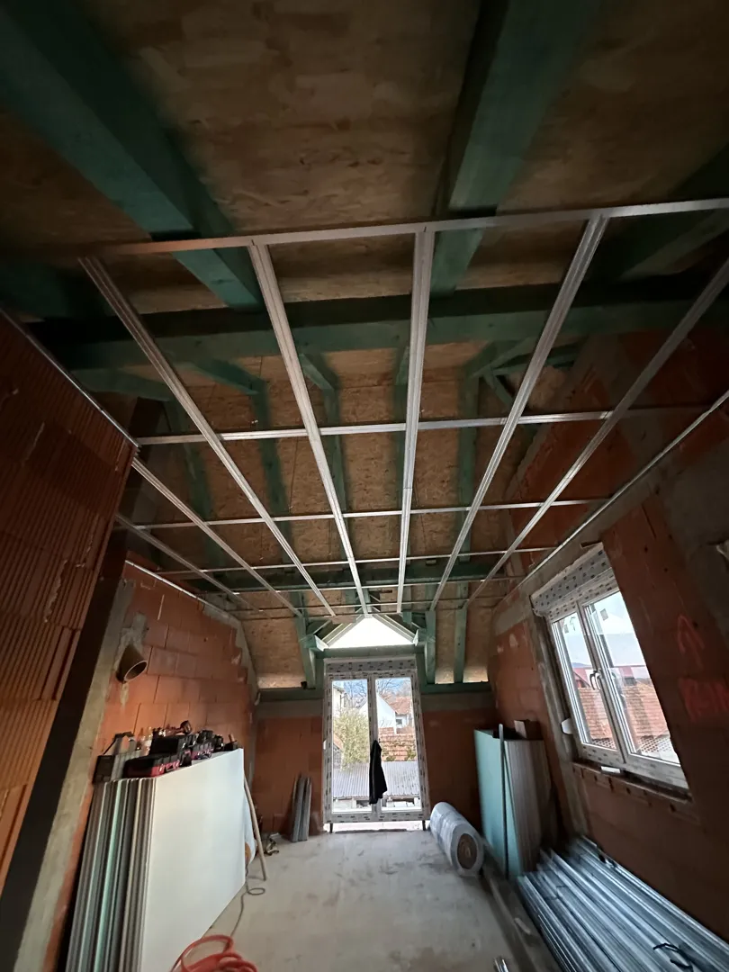U otvorenoj verandi širine 4,00m imamo na višoj strani stjenu visoku 3,60 m, a na drugoj nižoj strani je stjena visoka 2,45 m. Dužina verande je 6,00 m. Mi bi željeli strop spustiti na visinu cca 2,80 m. U Ljubljani u trgovini Merkur videla sam profile iz kovine koji se pritvrde u strop( kod nas strop je iz nosača i punila od opeke) i dole na profile montira se stirodur deb. 3 cm te obradi. Možda imate vi bolje rješenje. Ako ste zaiteresirani molim za vašu ponudu i druge uslove. Primite lijepe pozdrave . cca 15 m2 mjesto: Peroj