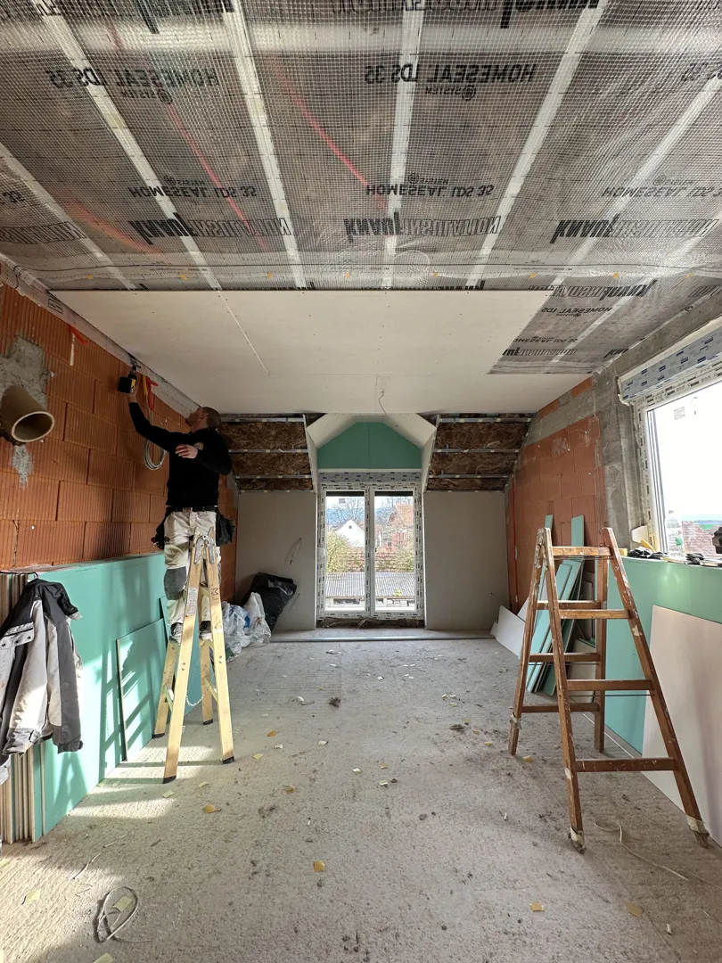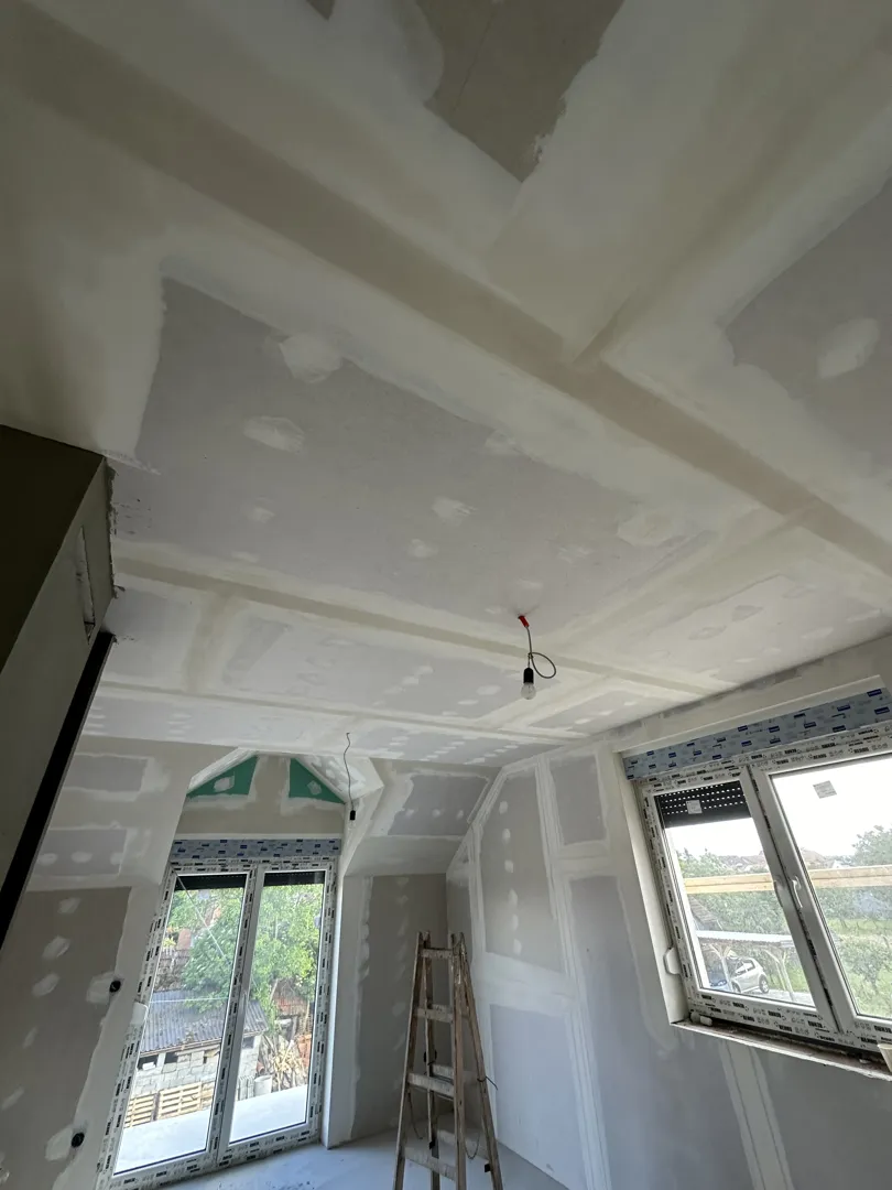 Zbog potresa je rub stropa jako ostecen.treba ga zatvoriti I spustiti strop.visina sobe je 3,8metara