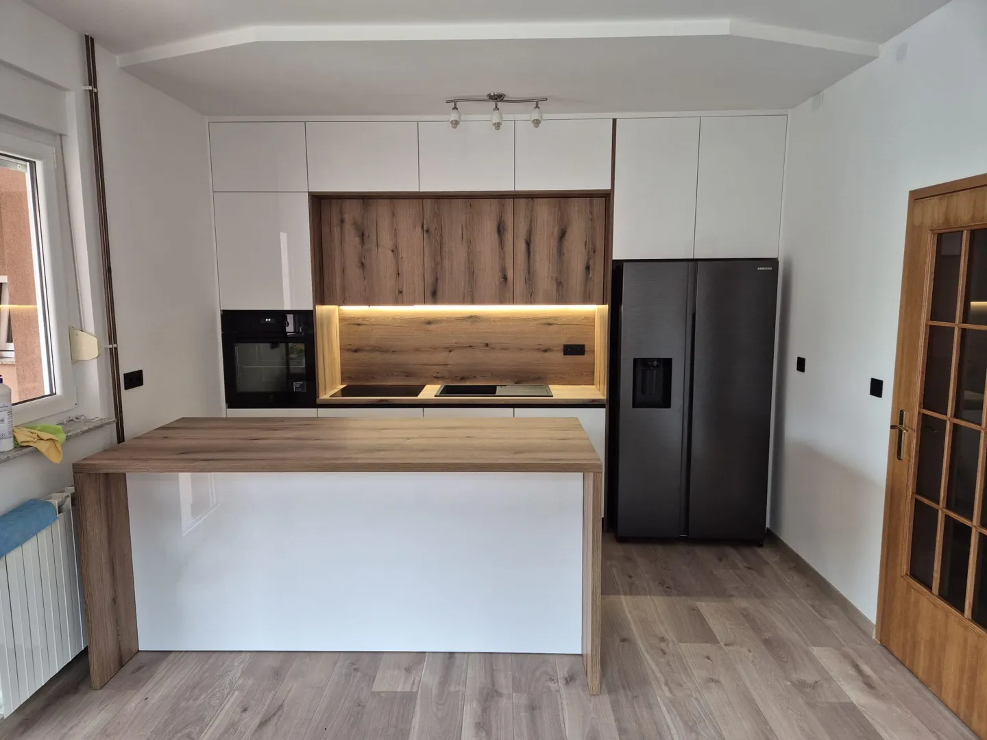 Potrebna mi je ponuda za kuhinju L oblika, dimenzija jedne strane cm i dimenzija druge strane cca cm. U kuhinju mora biti uklopljena u perilica rublja, jer ne stane nigdje drugdje u stanu. Svi uređaji su već kupljeni, jedino hladnjak još mogu kupiti ako se ovaj mali ne uspije uklopiti. Također bi trebali i gornji ormarići, koliko stane zbog prozora, te i u donjem dijelu što više mjesta.
