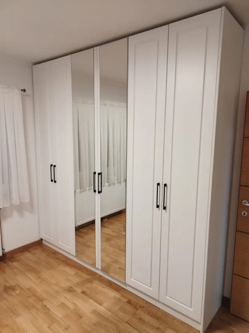 Poštovani, radi se o pregradnom ili šiber ormaru: sadašnja velika soba treba biti u dva dijela zahvaljujući ovom ormaru. Dakle, u ormaru bi bilo spremište odjeće za osobe iz obje sobe, od poda do stropa cca cm i u dužinu cca cm, imao bi klizna vrata i ukrasne otvorene police te ogledalo. Očekujem Vašu ponudu.