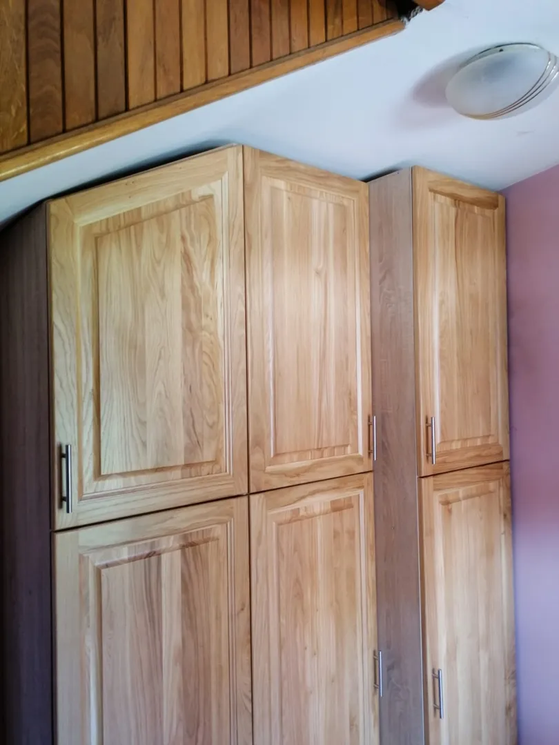 Poštovanje, dimenzije sam navela u privitku. Radi se o tri ormara i tri male kuhinje (samo donji elementi). Ormari su bijeli (ne visoki sjaj), kuhinje također bijele sa sivim radnim pločama. Za sve dodatne informacije dostupan je broj mobitela. Stražnji dio ormara je dio pregradnog zida pa mora biti obrađen, ne smije biti iverica. Očekujem Vaše ponude Lijep pozdrav