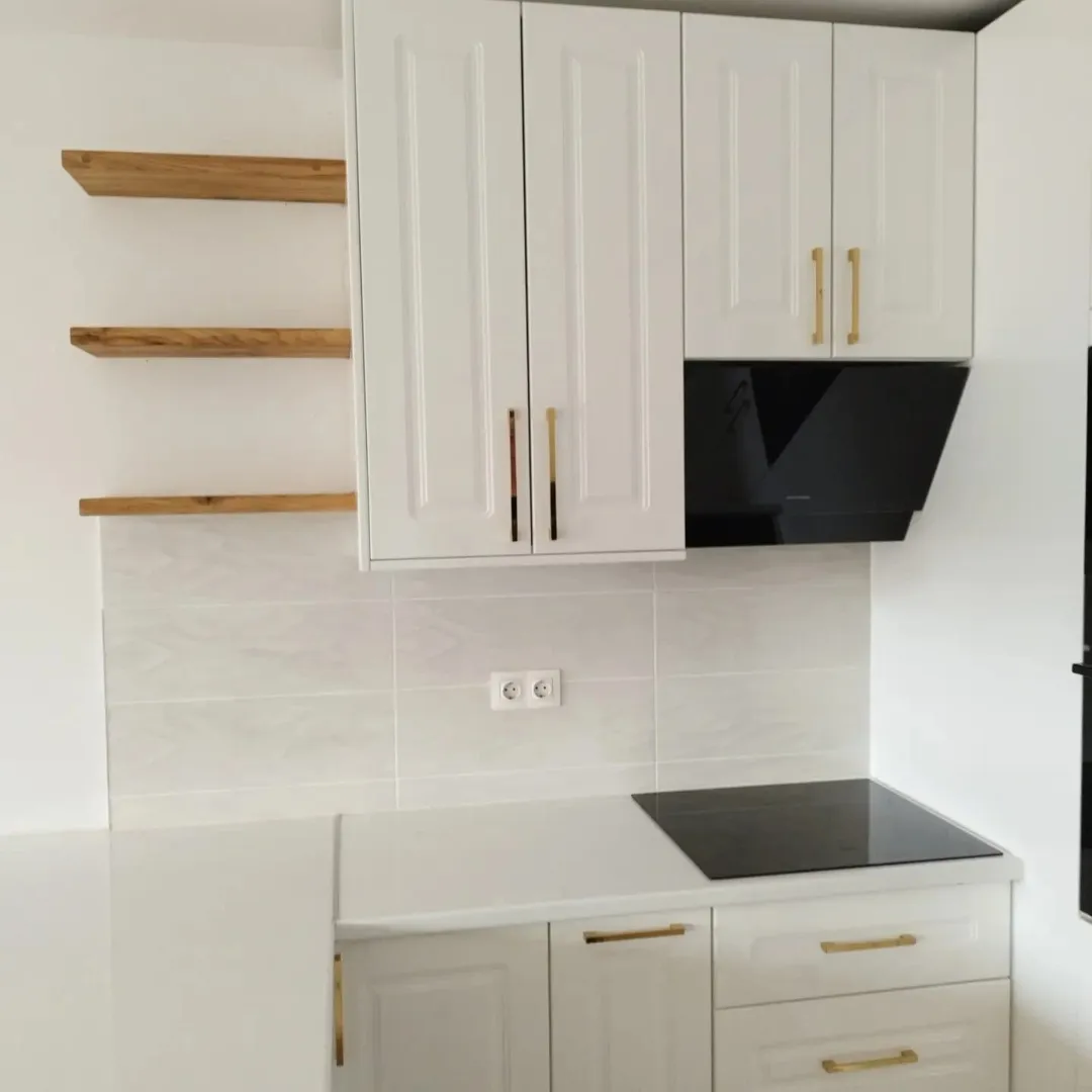 Poštovani, prostor je dimenzija 3 sa 3 metra i visina 2,5 metra. Prostor ima 3 zida, a četvrti je otvoren jer je u sklopu dnevnog boravka. Kuhinja bi pokrivala 2 zida gledajući iz boravka na prednji tj. čeoni zid i zid s moje lijeve strane na kojem je prozor /. Na čeonom zidu je pipa (tj. na sudoperu) udaljena od bočnoga desnog zida 80 cm, napa (60 cm) je također na tom zidu udaljena od desnoga bočnog zida cm. To su parametri na kojima ostaje sudoper i pećnica. Još trebam mjesto za perilicu koje nije uvjetovano i voljela bih pećnicu podignutu, znači u sredini između elemenata (nije uvjet). Na lijevom zidu gdje je prozor tj. na djelu zida prema boravku htjela bih samo dasku tj. stol u dužini 1.5 metra koji bi ujedno odvajao kuhinju od boravka. Ovo su moje okvirne želje, ništa nije uvjet. Gornji elementi u visini 70 cm (moze i više, manje ne). Tražim verziju jeftinije kuhinje i elemenata u jeftinijoj verziji. Boja bi bila bijela sa detaljima bordo crvene, može i ne mora visoki sjaj, ovisi o cijeni. Nekoga bih angažirala za izradu kuhinje u travnju ili svibnju. Plaćanje bi bilo gotovinom! Hvala i lijep pozdrav,