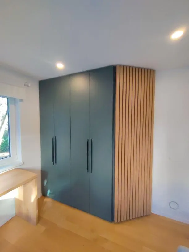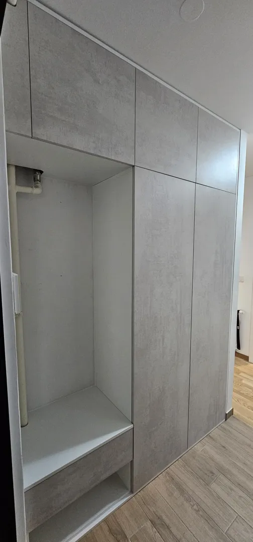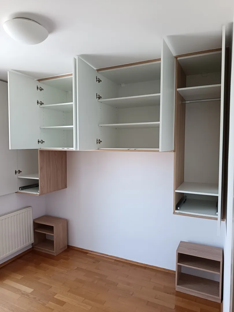 Potrebno je izraditi ugradbeni ormar. U prilogu su: tlocrt spavaće sobe, fotografija mjesta gdje bi se ugradio ormar, ručno nacrtan položaj ormara u sobi i njegove mjere, ručno skicirana vrata ormara te željeni unutarnji raspored ormara, ali, naravno, uz vašu sugestiju i doradu (kutove treba iskoristiti). Dimenzije ormara: cm (širina) x cm (dubina) x cm (visina). Ormar bi trebao biti bijele boje, jedino su vrata boje tamnog drveta. Ako su Vam potrebne još neke informacije, slobodno me kontaktirajte na broj mobitela: /-