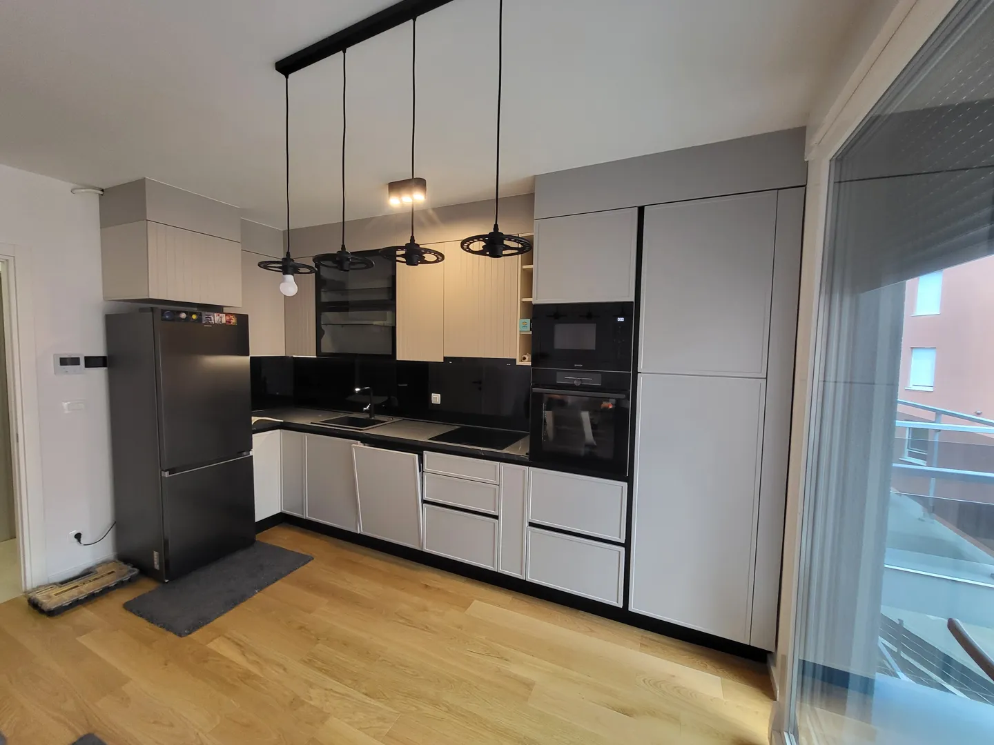 sastaviti Ikea kuhinju. 3 jedinice sa jedne strane i tri sa druge na jednoj strani je samo polica gore, a na drugoj 2 male jedinice 40x40cm i mala ventilacija za kuhanje samo polica gore ugljenim filterom ( bez cijevi) PLUS KLIZNA VRATA -objesiti: obicna iz Bauhausa- samo vise( nije kaseta) slika mala vrata 85xcm