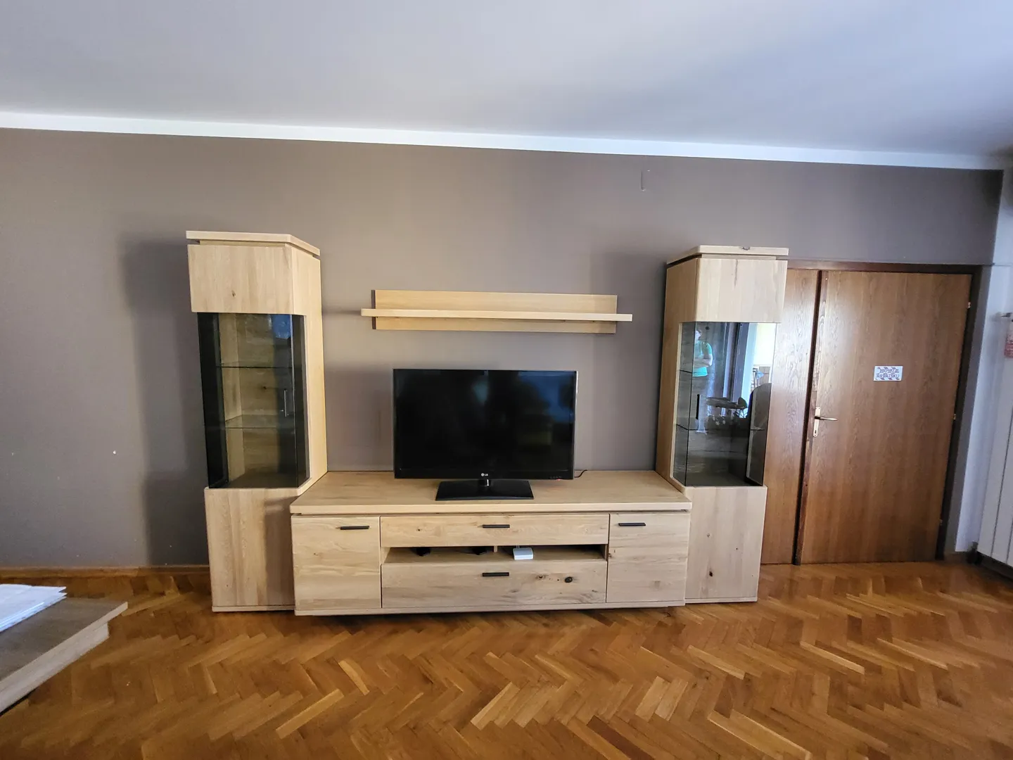Montiranje namještaja s nule: Ormarić siva boja betona: x 32,5 x 35 cm konstruirano drvo (+ montiranje na kupaonski zid) Ormarić za cipele sa 1 ladicom (v/š/d): 46 x 90 x 39.3 cm Ormarić za cipele s 3 ladice cca: 58.5xx17 cm Radni stol: x40x75,6 Ladičar sa 6 ladica: 28 cm x 44 cm x 69 cm Korigiranje (polu)montiranog namještaja: Vitrina: mm mm mm (police treba bolje pričvrstiti da skroz prianjaju uz okolni drveni okvir te treba smontirati dvije donje ladice) TV regal: x x mm (treba zamijeniti jednu ladicu tako da se iskoriste zamjenski dijelovi)