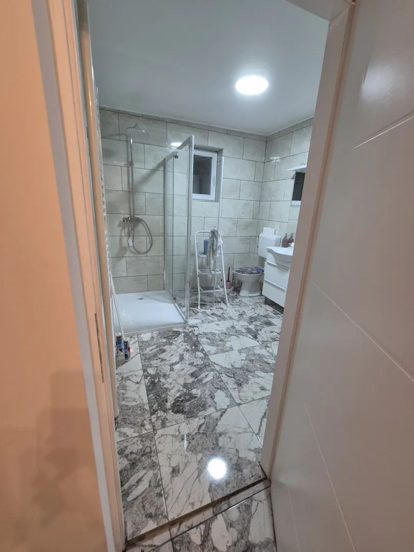Poštovani, radi se o manjoj kupaonici uz spavaću sobu od 3,2m2. Potrebno je poskidati sve pločice (uključujući i podne) te postojeću tuš kadu sa tušem, umivaonik te WC s ugrađenim Geberit vodokotlićem kao i radijator, ogledalo, umivaonik, pipu, lampu te kupaonske ormariće. Instalacije ostaju na istom mjestu. Kad se sve poskida, treba ugraditi plitku tuš kadu, vrata nove tuš kade te sve ostale spomenute elemente (samo nove). Ogledalo i ormarić će ugraditi poseban tim stolara. Molim vašu ponudu. Lijep pozdrav.