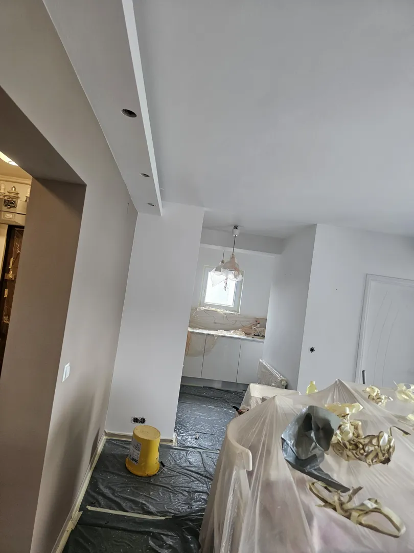 Izrada spuštenog stropa s izolacijom u stanu, cca 35 m/2 s ciljem sakrivanja cijevnih instalacija plina i grijanja te dodatne izolacije. Strop bi se spustio za 15 cm.