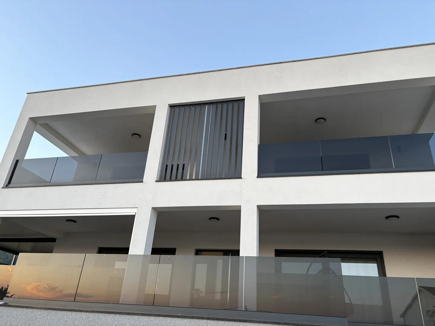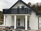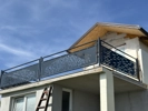 kutna balkonska ograda sa aluminijskim crnim profilom u podu odignutim za protok kišnice na natkrivenom balkonu dimenzije * po mogućnosti iz 3 dijela staklo 16mm zatamnjeno sivo-antrazit.