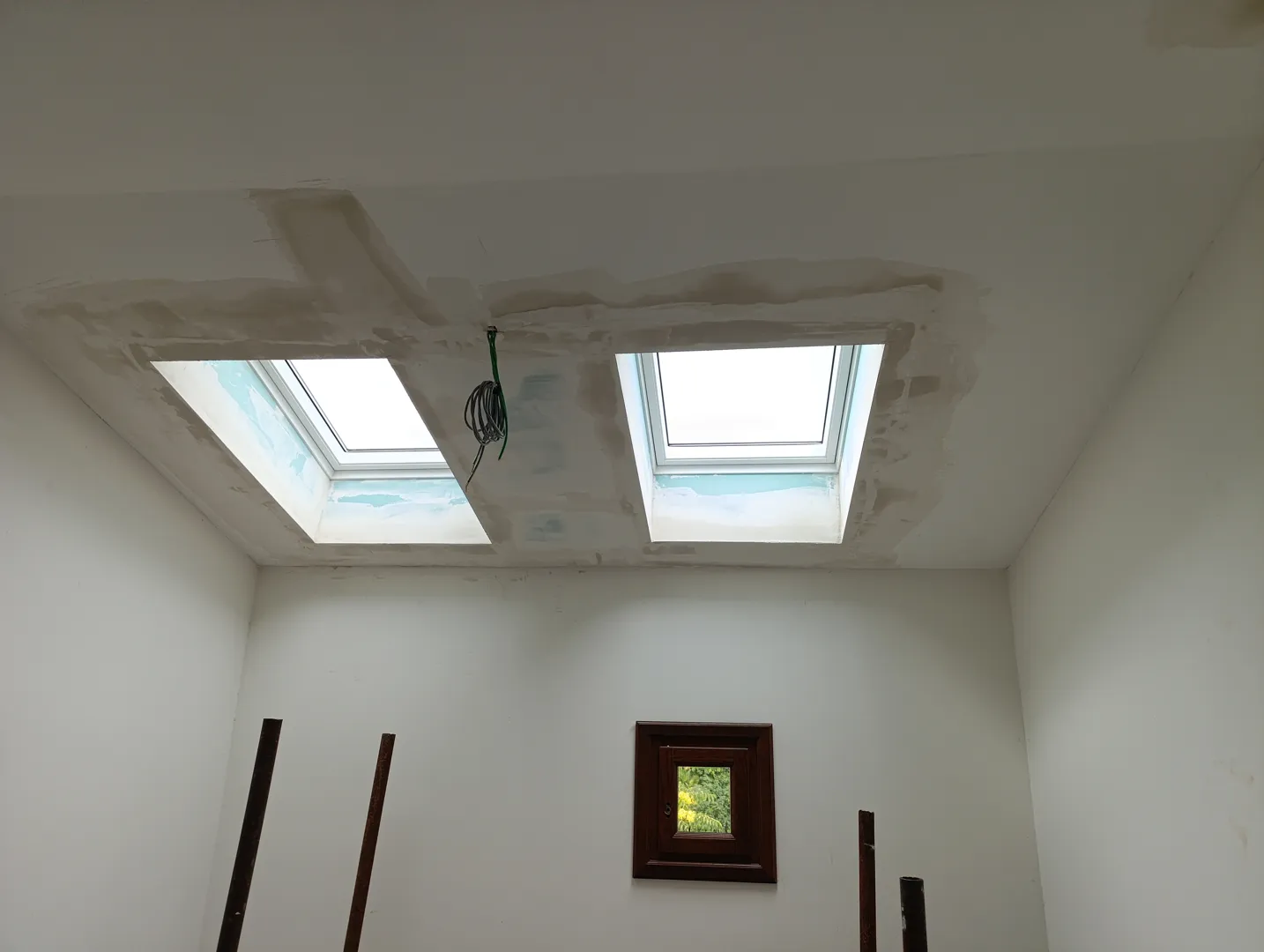 ravnanje stropova, krpanje šliceva nakon električara, mrežica i ljepilo po potrebi, 2x gletanje, bojanje Dulux bijelom vodoperivom bojom, strop običnom bijelom bojom. Šaljem fotografije prostora.