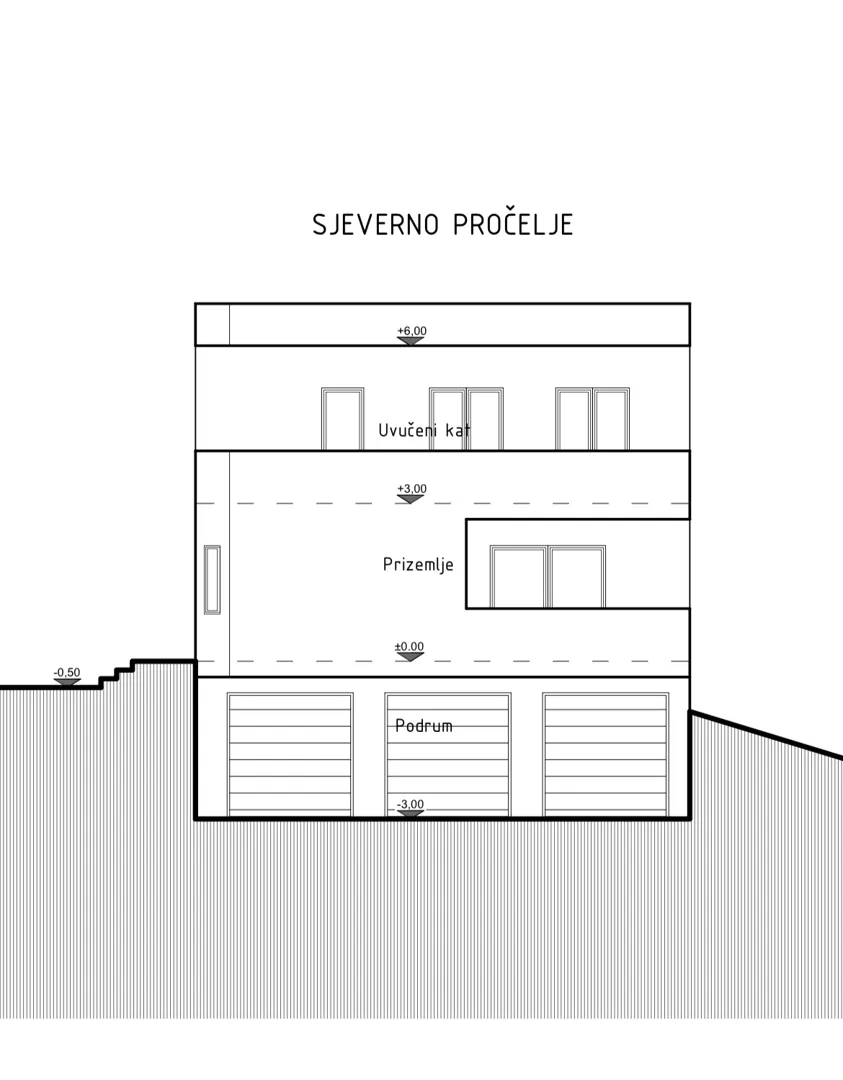 Obiteljska kuća za 8 članova Kuća bi trebala imati podrum kotlovnicu i među kat i potkrovlje Kuhinja,dnevni boravak, WC,prostor za garderobu i mašinu, terasa Potkrovlje za sobe i kupatilo