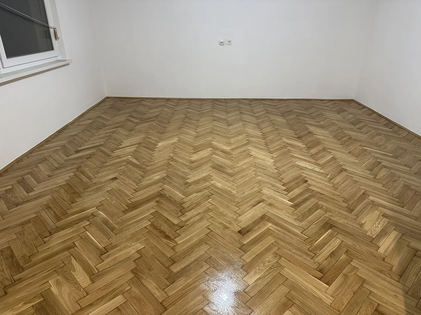 Brusenje, lakiranje mat lakom u 2 prostorije. Ispuruka i montaza sokl lejsni (bijele 60x18 mm ili sl.) u cijenu ukljucen materijal