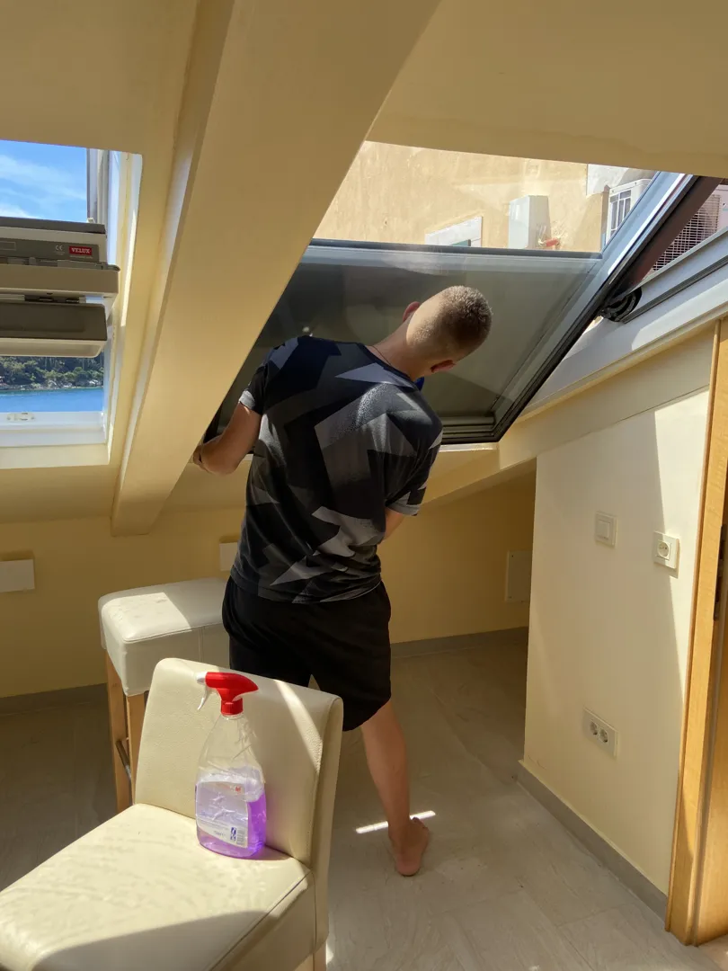 O nama: Čišćenje apartmana Rovinj – Stari grad Smjena gostiju isti dan? Nema panike. Dolazimo brzo i odradimo kako treba. Kupaona, kuhinja, podovi, stepenice – sve čisto i spremno za nove goste. Znamo kako ide sezona i kakav je pritisak. Dogovor jednostavan, bez puno priče.