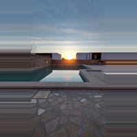 Metalna pocinčana ograda, 2m visoka, 2D, sa trakovima. Teren je u manjem padu, opcija je, da i temelji padaju ili u stepenicama po cca. 3-5 m.