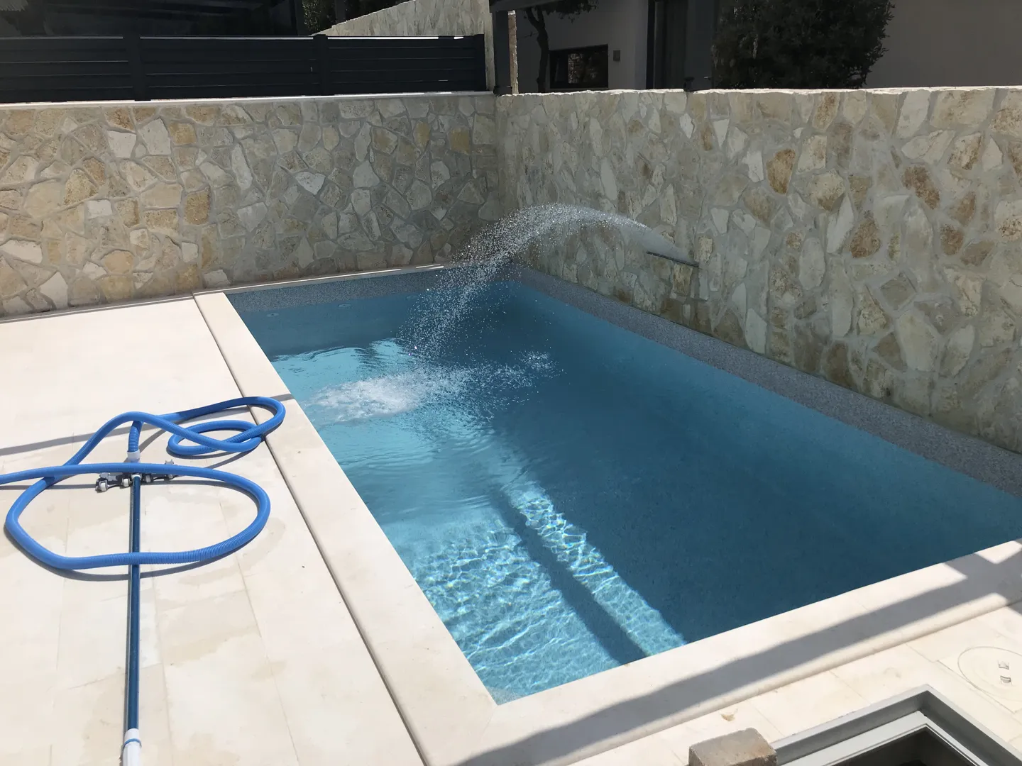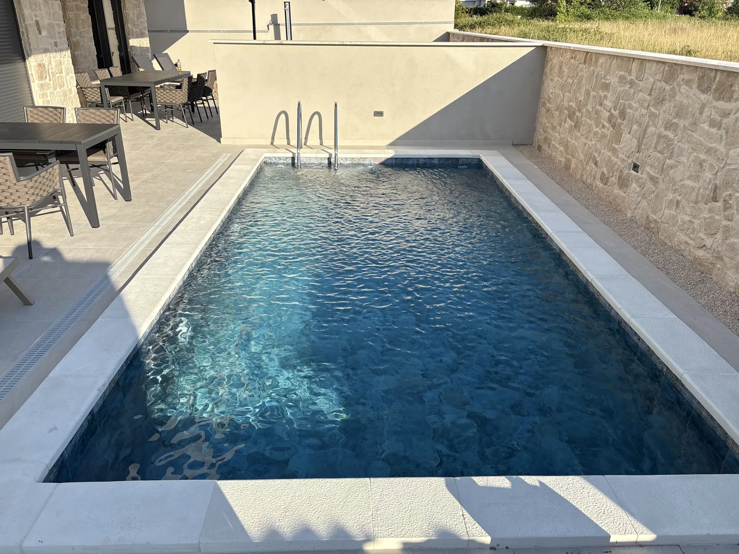 Poštovani, željeli bi napraviti bazen u sklopu obiteljske kuće u mjestu Pitve na otoku Hvaru,. Bazen bi bio na specifičnoj poziciji i to između 3 kuće (jedan zid je naša kuća, dva zida su susjedni tereni). Dakle, zid bi bio sa 3 strane, a sa jedne strane bi bila terasa sa koje bi se ulazilo u bazen. Bazen može biti maksimalne površine 18 m2 i namjenjen će biti za 4 osobe. Hvala za pomoći.