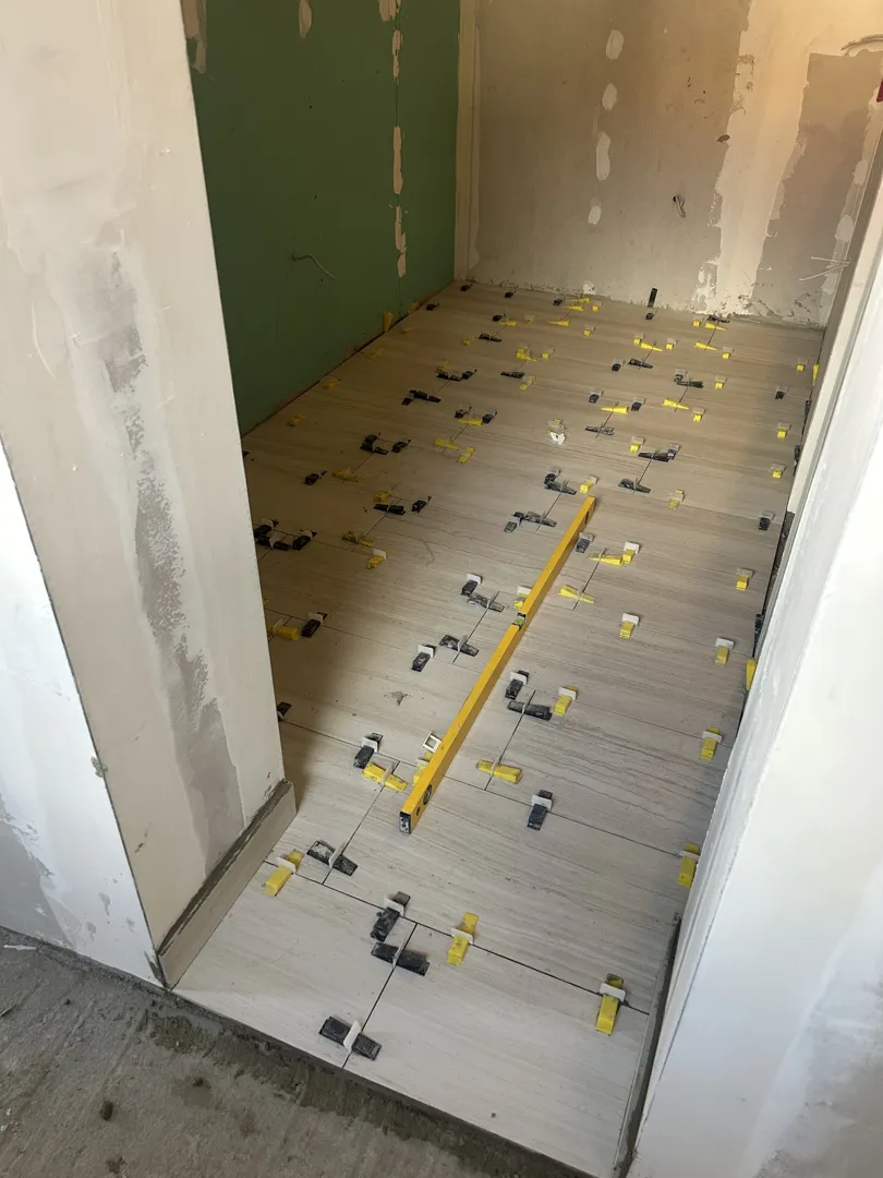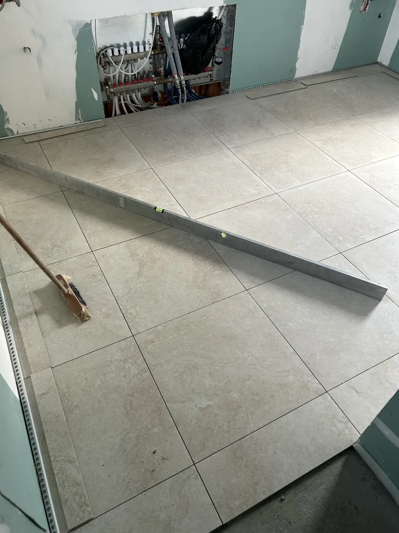 Postavljanje estriha u hodnik, kuhinju i kupaonicu, cca. 20 m2 Postavljane pločica hodnik, kuhinja i kupaonica. Priprema zidova kupaonice za nove pločice. Hodnik i kuhinja 15m2 - pločice 60x Kupaonica pod 5m2 - pločice 60x Kupaonica zidovi 26m2 - pločice 17m2 80x 8m2 78.5x.5 (tuš - walk in)