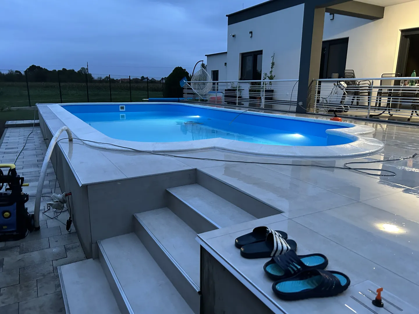 Potrebno je postaviti pločice u unutarnjem stubištu veličine 14,73 m2 (pod) te na stepeništu širine cm, gazišta 30 te visine cca 16 cm te vanjske pločice na balkonima sa svim potrebnim završnim elementima na postojeću podlogu. Nakon nuđenja ponude, s obzirom na nuđenu cijenu postoji mogućnost za uređenjem dodatnih površina (staza oko kuće, uređenje betonskih arula u vrtu, popločavanje vanjskih vrtnih stepenica i sl.