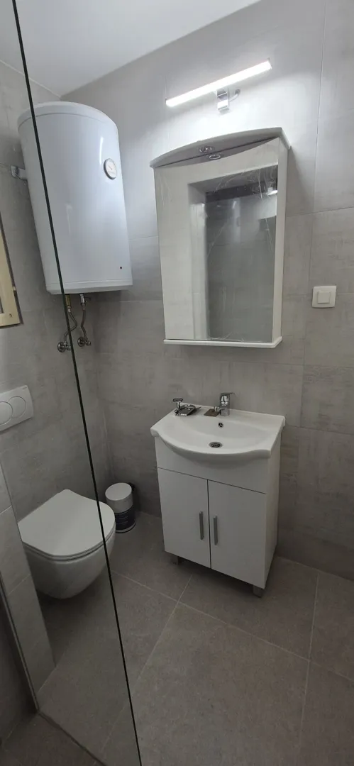 Potrebno je zamijeniti staru gusenu kadu sa tuš kabinom, zamijeniti umivaonik i wc školjku sa vodokotlićem. Preštemati dovod i odvod vode za veš mašinu. Provjeriti u kakvom su stanju vodovodne instalacije u cijeloj kupaonici i izmijeniti ih, prema potrebi. Preštemati elektoinstalacije za dva nova rasvijetna mjesta i jednu utičnicu. Zamijeniti željezni radijator sa rešetkom i to kada završi sezona grijanja jer smo na toplani. Promijeniti pločice u kupaonici. Sanitarije, rešetkasti radijator i pločice, tuš kabinu s kadom kupovali bi sami, po uputi izvođača radova.