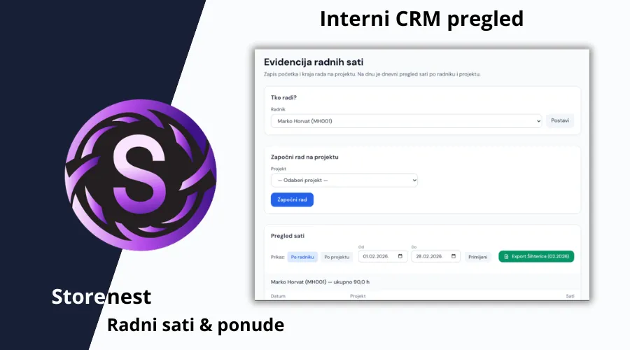 O nama: Storenest agencija specijalizirana je za razvoj naprednih digitalnih rješenja prilagođenih stvarnim potrebama poslovanja. Fokusiramo se na izradu ERP i CRM sustava po mjeri, kao i drugih potpuno prilagođenih softverskih rješenja koja omogućuju optimizaciju procesa, povećanje efikasnosti i bolju kontrolu nad poslovanjem. Razvijamo sustave koji se u potpunosti prilagođavaju postojećim poslovnim procesima, uz mogućnost integracije s već postojećim alatima i platformama.