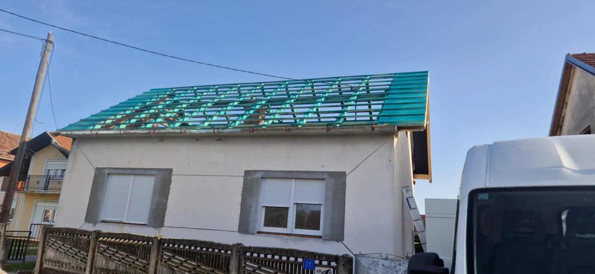 S kuće jednokatnice treba skinuti pokrov i letve, izvršiti postavu Osb ploča debljine 12 mm, postaviti krovnu foliju izvršiti letvanje i kontra letvu te izvršiti pokrivanje sa crijepom kao Kontinental (Nexe).