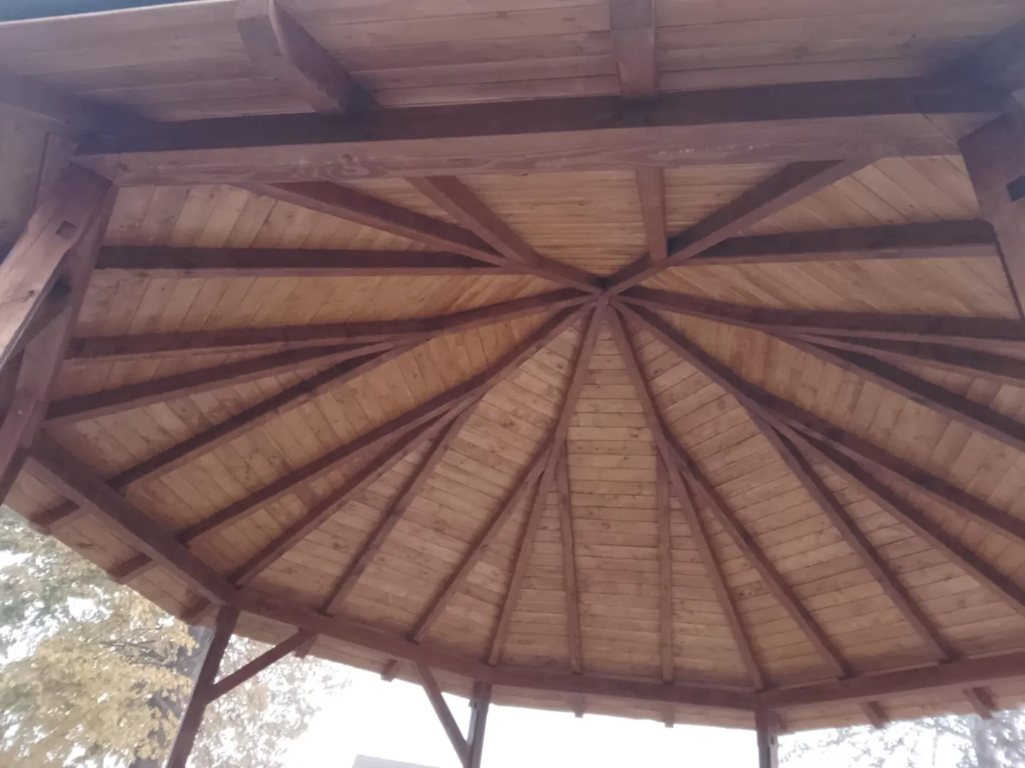 Vikendica iz 80-ih sa dvostrešnim krovom. Pokrov je trenutno od salonit ploča. Drvena konstrukcija se čini dobra, no trebalo bi utvrditi što treba mijenjati.