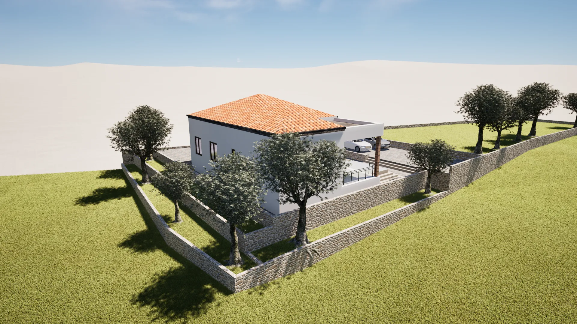 Zemljište na kojem se tek treba izgraditi objekt,(više kao kuća za odmor).Kvadratura koja je gore spomenuta je želja spomenutog objekta a kvadratura zemljišta je cca m2.Želja je da kuća ima tri sobe pomogućnosti,wc,kuhinja i boravak,okućnica sa zelenilom i pomogućnosti garaža za automobil.unaprijed hvala Kontakt mailom