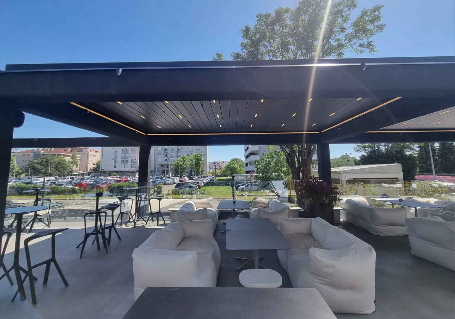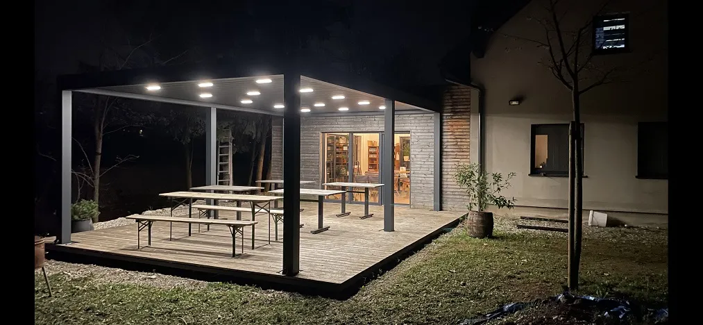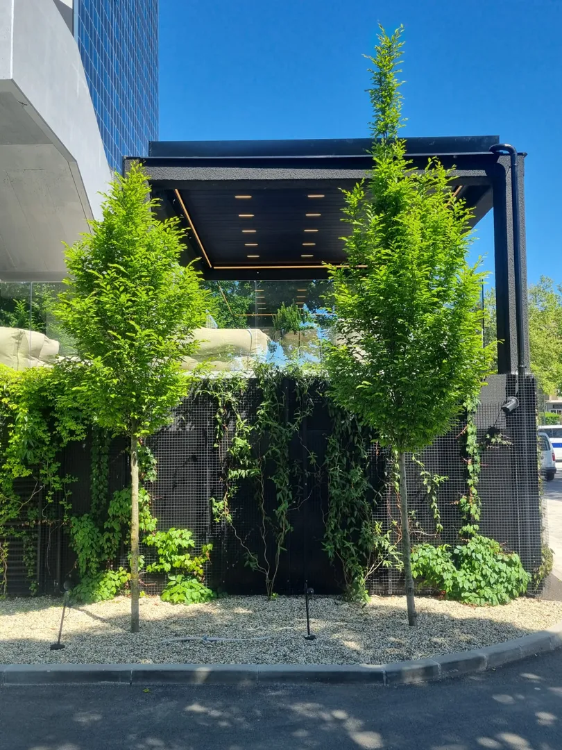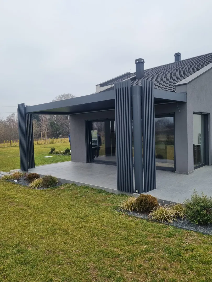 Trebamo bioklimatsku pergolu širine 5m puta 2,5 za natkrivanje terase. Bila bi dijelom pričvršćena na zid i postavljena na 2 stupa sa pokretnim lamelana i ugrađenim svjetlom ,izradjena od plastificiranog aluminija. Lamele da se mogu podešavati prema svjetlu i da se mogu potpuno povuci da terasa ostane otkrivena.