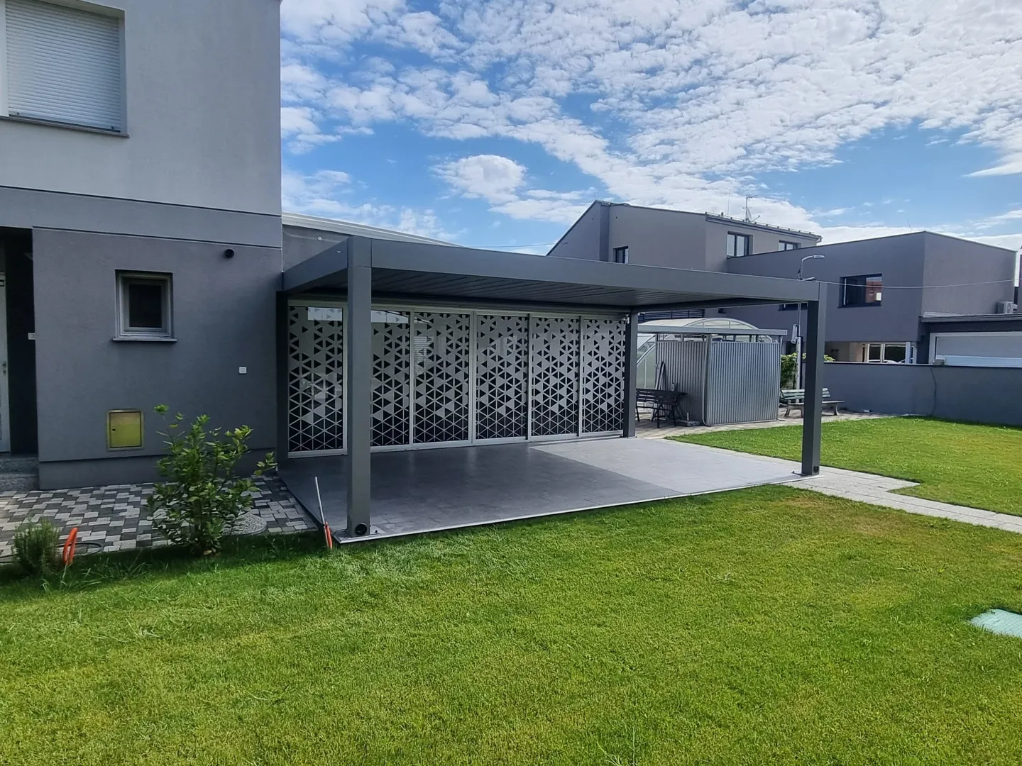 U potrazi sam za pergolom ili nadstrešnicom za privatni stan na krovnoj terasi. Lokacija: Karlovac Dimenzija: cca 5 x 5m (ili 5 x4m ako je za veće potrebna dozvola) Montaža s jedne strane na zidu zgrade u visini cca 3m Sa dvije strane bi bilo poželjno postavljanje roletna ili neke vrste zaštite od sunca (npr. kao na slici u prilogu). Rok izrade: što je prije moguće