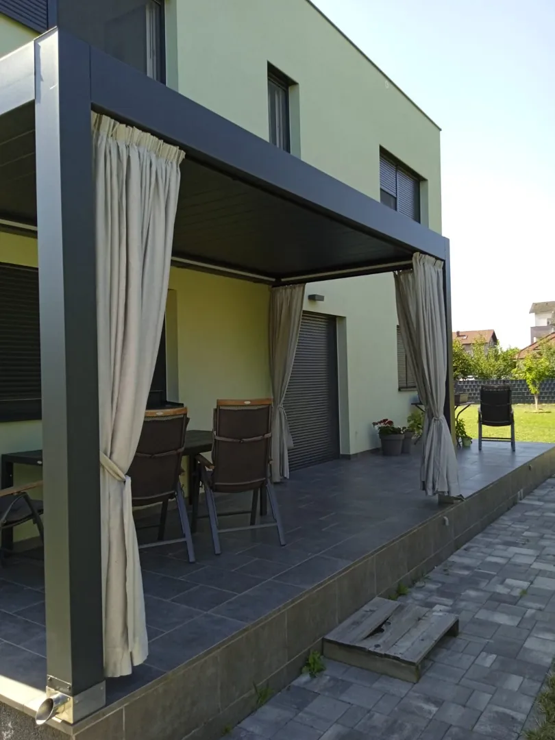 Zanima me ponuda za pergolu koja bi se nalazila na terasi obiteljskog stana na trecem katu(Split). Dimenzije terase su 4,9 m x 4,9 m, a pergola bi isla 3 m u duzinu. Zanima me cijena bioklimatske pergole, te neke alternativne, fiksne pergole. U prilogu cu vam staviti postojece slike terase, te neka moguca idejna rjesenja koja mi se svidaju.
