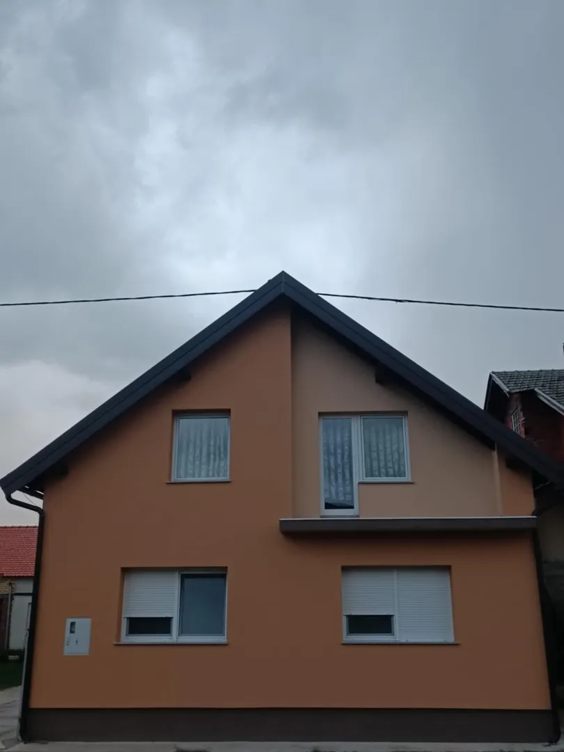 stambena obiteljska kuća sa svim otvorima u pvc izvedbi.fasada vrlo dobra kerofa i preko nje sep zaprljana od bivših zatvora od drveta.orjentacione dimenzije 10x8 i prosječne visine 5m