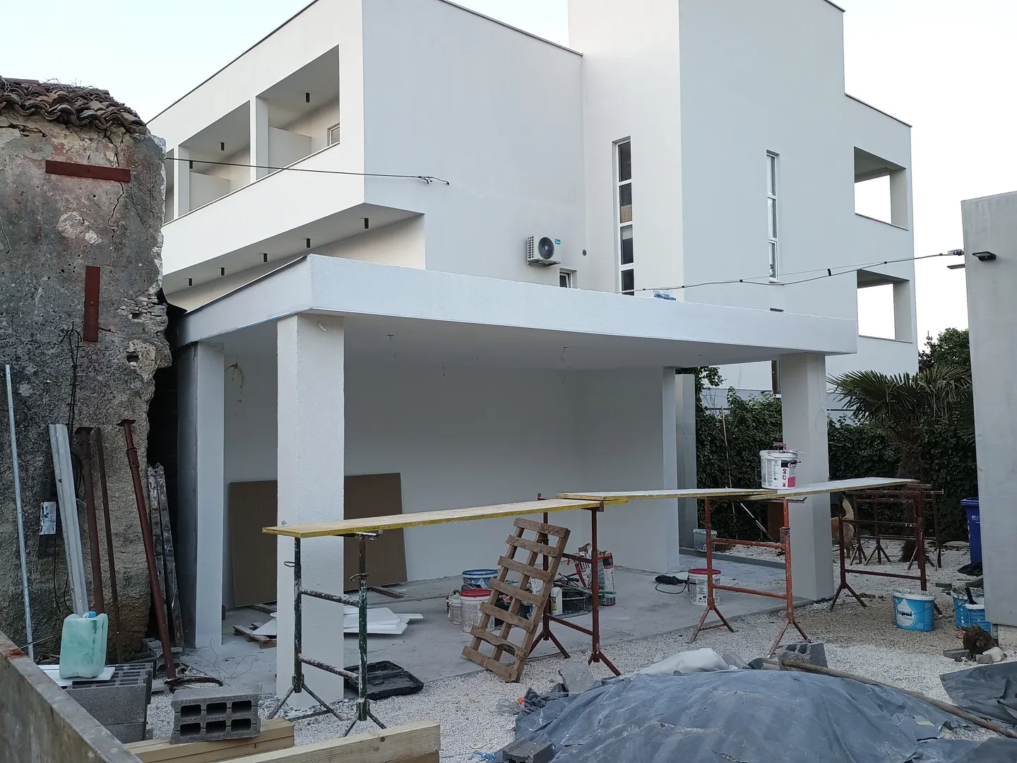 Naš projekt je: dodatni objekt (da može služiti više namjena od ostave do stambene), koji se gradi uz obiteljsku kuću. Ima položene temelje u zemlji do razine zemlje. Treba otkopati i dovršiti temelje do visine 0.5m iznad zemlje, i napraviti temljenu ploču, ozidati prizemni objekt sa ravnim krovom vanjskih dimenzija 7x6m (deka). Imamo svoga električara a sve ostalo bi željeli da izvođač napravi sve do faze ključ u ruke (instalacije vode/odvodnje, prozori, maleraj, pločice i fasada). Na tlocrtu je nacrtan dimnjak, ali ga nećemo izvoditi grijanje ćemo na struju, pa taj dio u ponudi zanemarite.