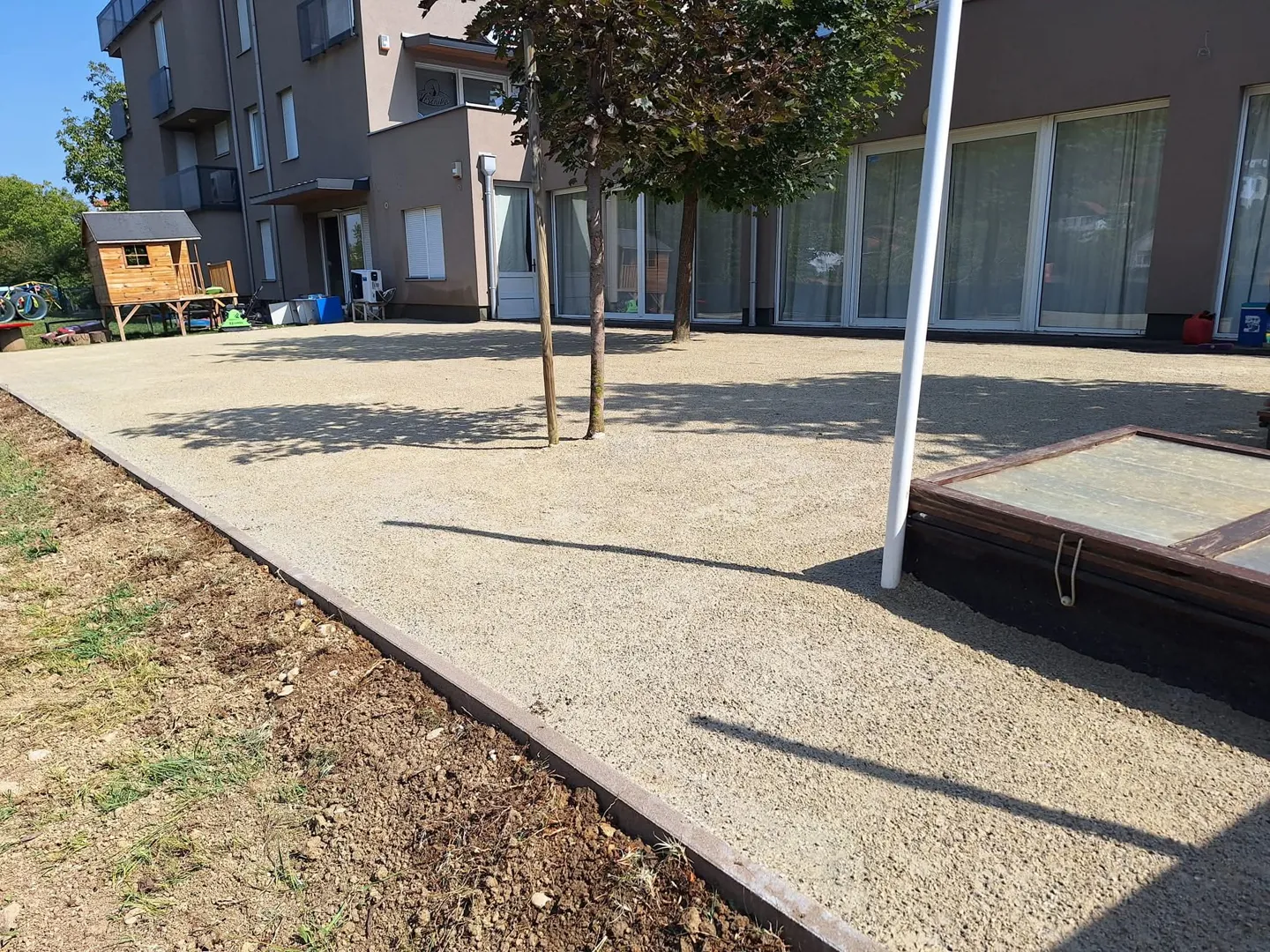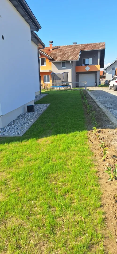 Dvorište je neravno te je potrebno ravnanje te izrada travnjaka