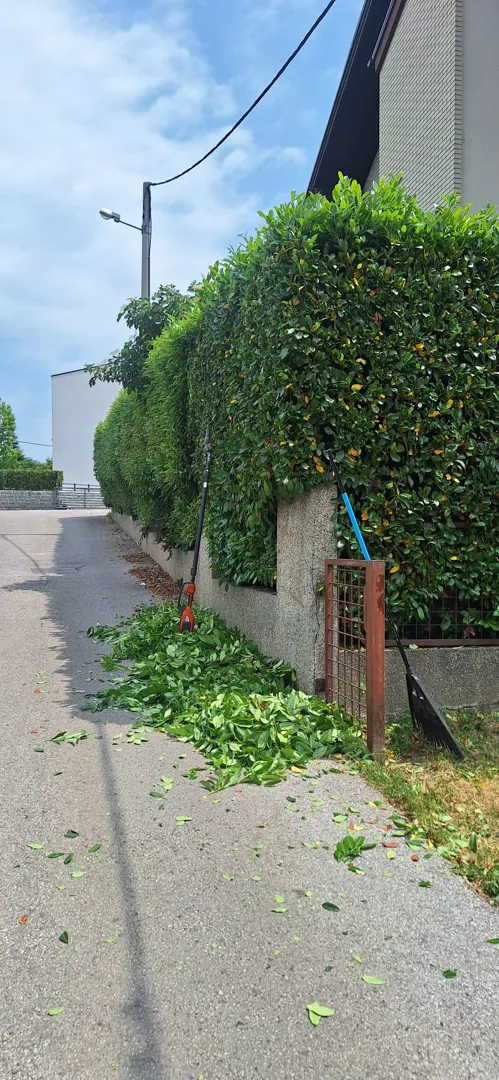 Molim ponudu za uređivanje-šišanje raslinja lovor višnje uz ogradu u dužini cca 50 metara dvostrano, te oblikovanje ostalog raslinja-čempresi 2 komada te ostali sitni radovi. Visina raslinja uz ogrdu je cca 2.5 metra kao i čempresi. Potreban je odvoz otpadnog materijala.
