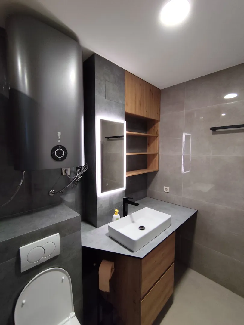 Opis radova – zamjena WC školjke i ugradbenog vodokotlića (bez keramike) 1. Demontaža postojeće opreme: Uklanjanje stare WC školjke. Demontaža postojećeg ugradbenog Geberit vodokotlića. Štemanje pločica i zida oko vodokotlića radi pristupa i pripreme za novu ugradnju. 2. Odvoz otpada: Organizacija i odvoz kompletne demontirane opreme i građevinskog otpada (WC školjka, vodokotlić, šuta). 3. Ugradnja novog sustava: Montaža novog ugradbenog Geberit vodokotlića. Oblaganje konstrukcije vodokotlića knauf pločama (priprema za kasniju keramiku). Montaža nove WC školjke na pripremljeni zidni nosač.