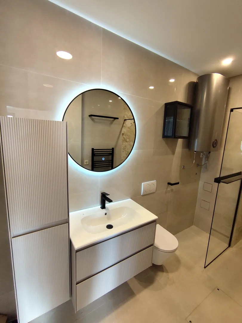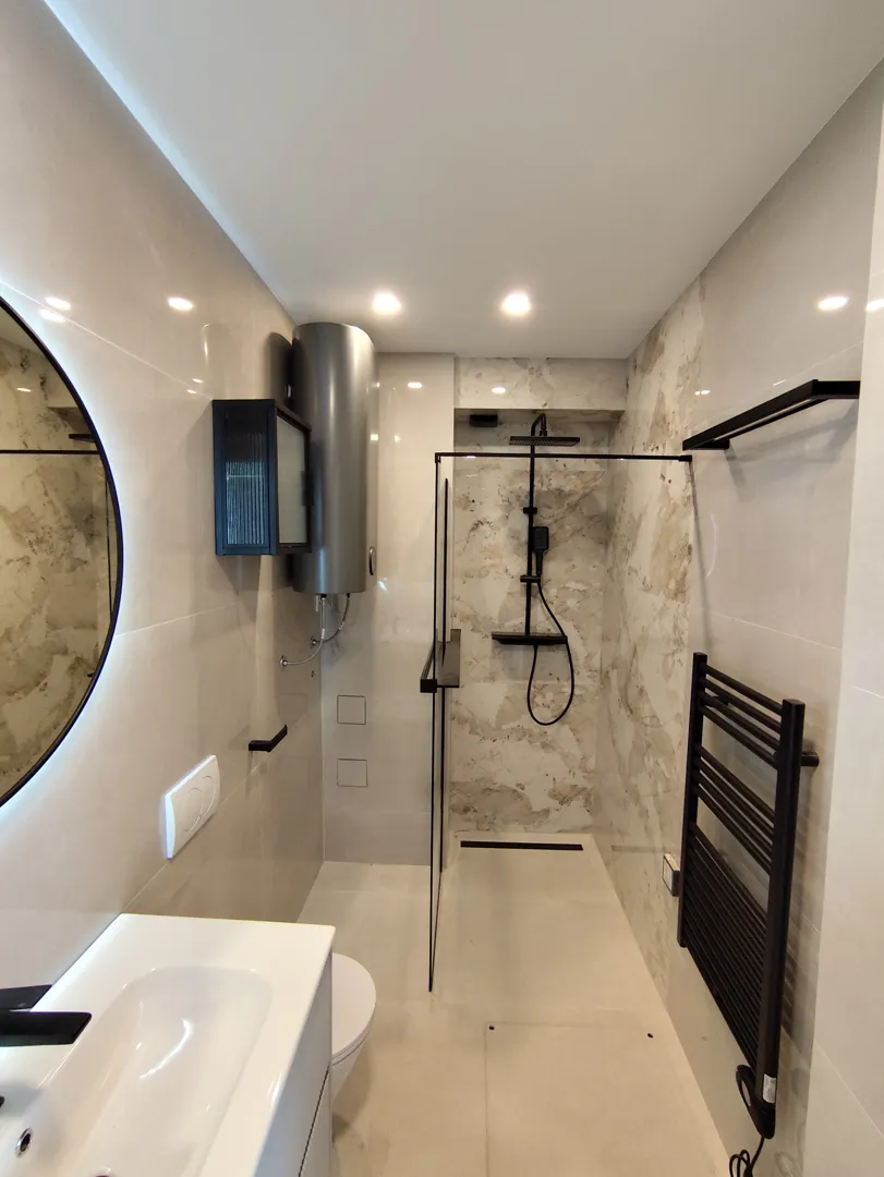 Mala kupaonica površine 2 m2 Sa postavljenim novim odvodnom i dovodom vode u podu. Potrebno je napraviti odvod i dovod vode za tus kabinu koja se nalazi odmah uz vertikalu, odvod i dovod vode za elektricno bojler, umivaonik i za sudoper na istom zidu samo s druge strane. Početak rada slojedevi tjedan lokacija Kaštel Štafilić. Kupaonica ima plocice i ravne uređene zidove