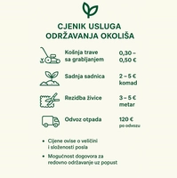 O nama: Obrt smo koji posluje na području Splita i okolice od 2012 godine.Bavimo se rezanjem stabala,košenje trave,rezidba živica,sadnja ,odvoz biootpada