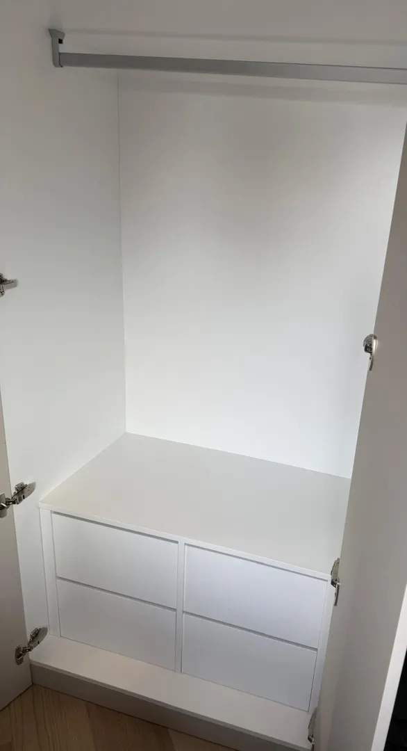 Dva povišena kreveta ispod kojih bi se nalazio ormar u kombinaciji sa ladicama i ormarom za vješalice visine cca cm, dužine kreveta 2 m i širina 90- cm. Između ta dva kreveta bi trebala biti nekakva klizna vrata, slika kao primjer za vrata je ispod
