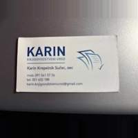 Gospođa Karin je jako susretljiva i odgovorna osoba. Uvijek je dostupna i voljna pomoći na bilo kakav problem u papirima naiđete. Cijena je realna i povoljna. Sve je odrađeno korektno i profesionalno. Svakako ću još koristiti njene usluge. Za svaku preporuku. Nećete pogriješiti ako je odaberete.