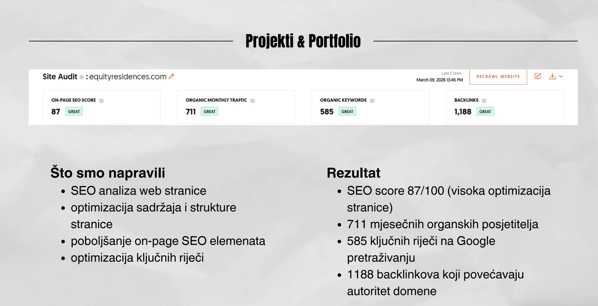 Može se izmjeriti kako optimizacija web stranica utječe na vaše poslovanje. Agencija koja za vas vrši optimizaciju redovito će provjeravati postižete li zadane ciljeve.