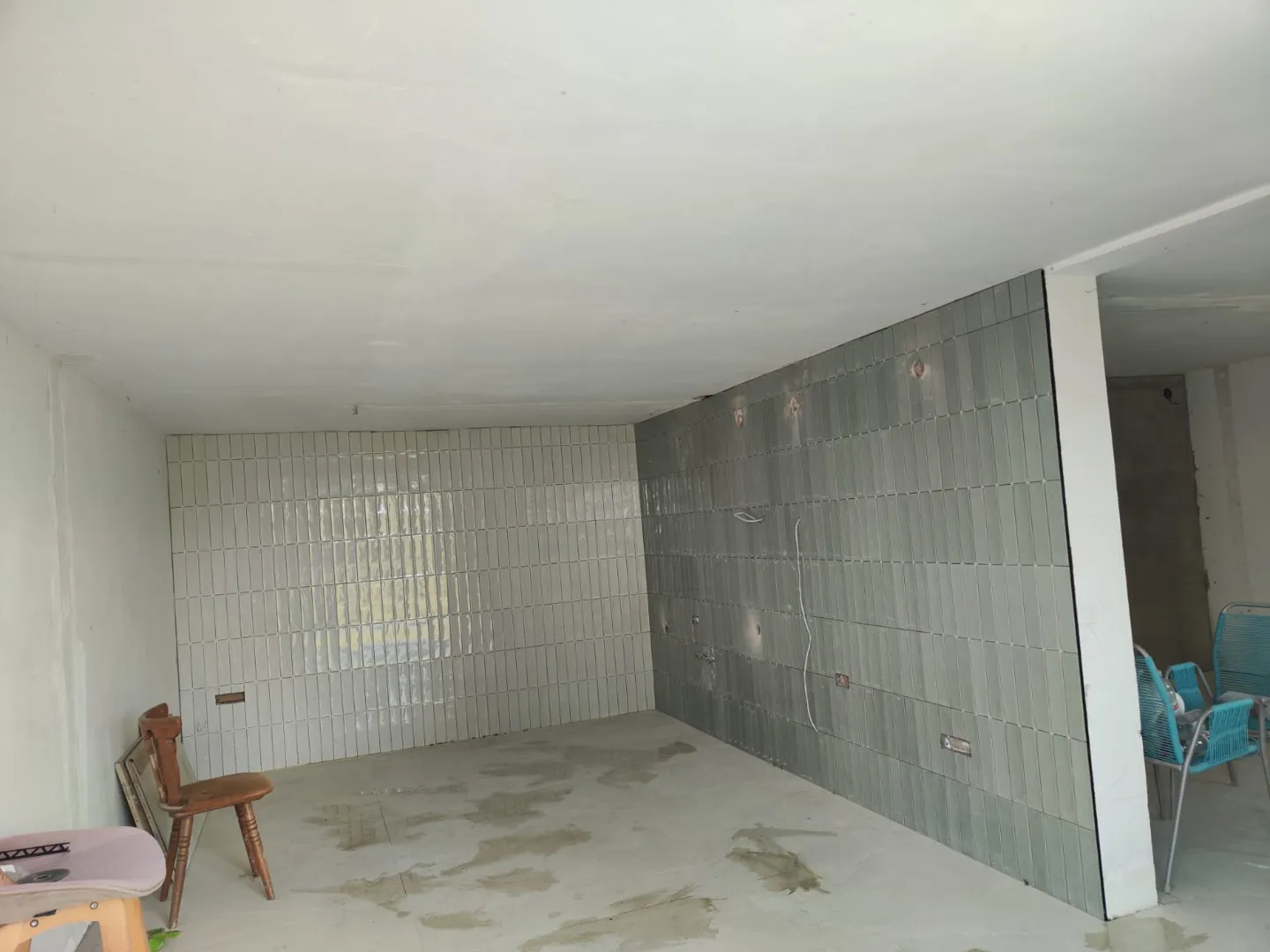 Kuća se renovira iznutra i većina radova je već gotova i zidovi su u pravilu u redu jer imaju boju staru par godina. Iznimka je jedan zod površine manje od 10 kvadrata koji treba i gletati prije bojanja. Sa svih zidova treba strugati staru boju (bijela), koristiti impregnaciju prije nove boje (bijela) i popuniti rupice i pukotine prije toga.